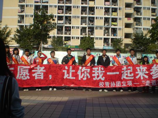 12月5日为一年一度的国际志愿者日。为了进一步推广志愿者理念,传递志愿服务精神,外国语学院青年志愿者协会在一区广场举行了精彩的志愿者风采展,向广大同学展现外国语学院志愿者服务队所开展的活动和团队建设情况,展示外国语学院志愿者的风采。