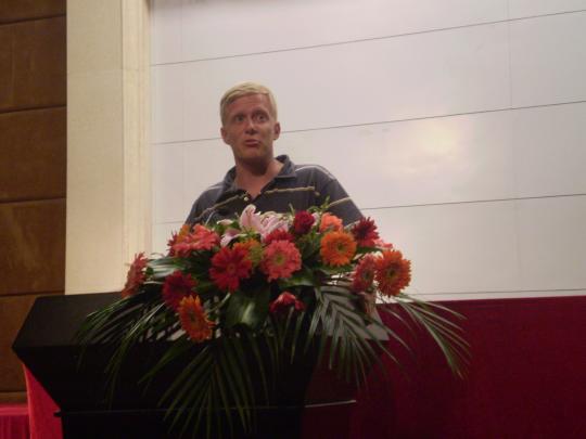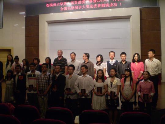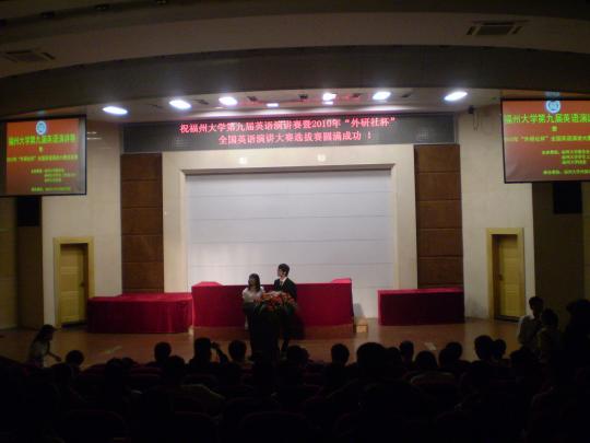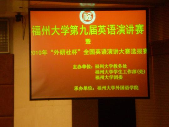 第9届英语演讲大赛暨2010年“外研社杯”全国英语演讲大赛选拔赛在模拟法庭拉开序幕。教务处副处长刘开昌老师、福建省大学外语教学研究会会长吴松江教授、党委副书记刘旺老师及外教Eric等应邀担任评委,阵容强大。经过初赛的紧张角逐,来自不同学院的17位优秀选手进入本次决赛。