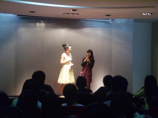外国语学院共有四名同学参加了这次的周赛。林晓芳带来了一首清新欢快的歌曲《我的最爱》,曲调婉转优美,吸引了所有在场的人;王丹凤的一曲《星月神话》把观众们带入了另外一个美妙的仙境中;王婧为观众们带来一首温柔抒情的《永不消失的彩虹》,歌声优美,赢得了热烈的掌声;最后参赛的是林芸,一首《遗失的美好》受到了观众们的一致好评。全场气氛热烈,充满了青春活跃的气息。