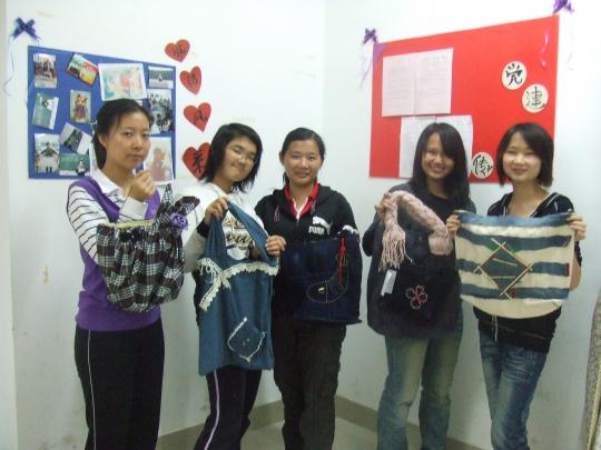 每个参赛宿舍的同学们充分发挥自己的想象力,团结合作。他们以废弃的衣物等作为环保袋的原料,在此基础上再加上自己的手工加工和充满创意的图案绘制,从而设计出一个个独具风格的环保购物袋。比赛结束后,共有6个作品脱颖而出,其中13#408宿舍获得一等奖,13#407宿舍与13#411宿舍获得二等奖,13#409宿舍,13#418宿舍与13#302宿舍则分别获得三等奖。