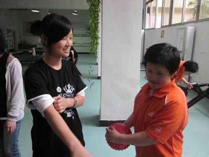 针对这些智障人士,英语2班的同学准备了如下活动:1.游戏活动 2.六一礼物赠送 3.艺术贴纸活动 4.舞蹈表演。这些活动恰好与今年即将在福州市举行的特奥会相符合。