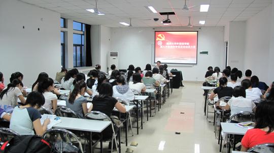 外国语学院党委副书记刘旺主持,团委书记周越、07级辅导员刘燕、08级辅导员黄柑莲、09级辅导员刘文婷及外国语学院全体党员和党员出席此次大会。