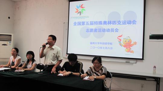 7月8日上午10点30分,外国语学院在院办公楼210室举办了“全国第五届特殊奥林匹克运动会志愿者活动”动员大会。此次动员大会主讲人为外国语学院党委副书记刘旺老师。