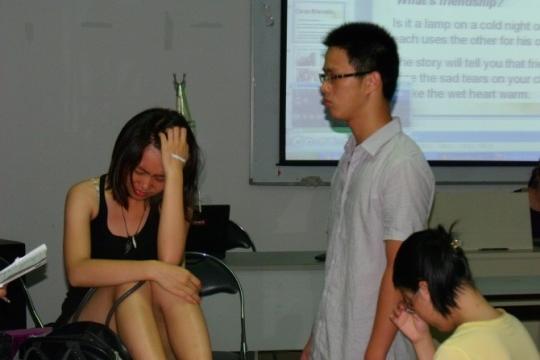 英语一班共有三个剧目,分别是《Dear Friend》《Unexpected Crisis》《A dream of red mansion》。