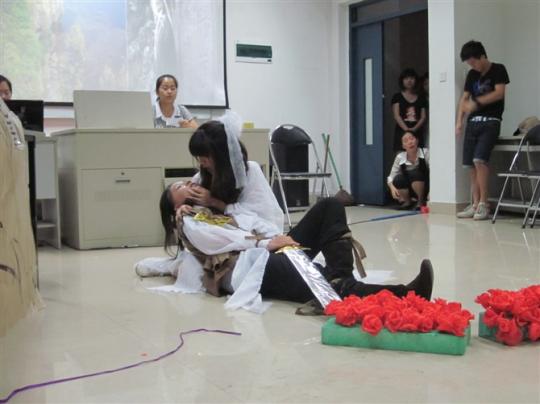 英语二班推出了两部精彩的英语剧《心灵的救赎》以及《非诚勿扰之神雕侠侣》,他们凭借自己超人的才华,卓越的演技和流畅的英文对白,在舞台上演绎出一个个动人的故事。