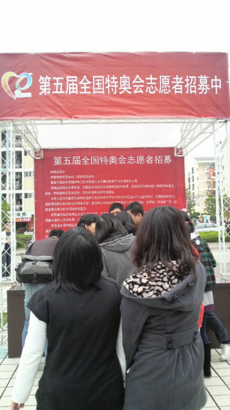 图为外国语学院同学在特奥会志愿者现场报名