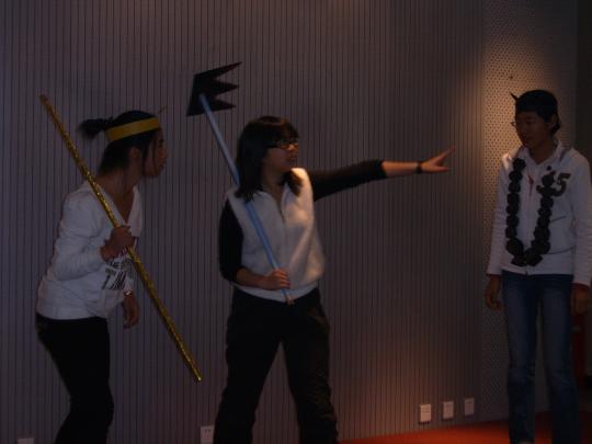 外国语学院话剧选取西游记中的人物和剧情进行改编。演员们精彩投入的表演和幽默的台词引来台下同学阵阵掌声与笑声。剧中采用的角色反串更是一大特色,令人忍俊不禁。外国语学院的话剧以轻松活泼的方式来诠释了“珍爱生命,抗击艾滋”这一深层的主题,从与众不同的角度有力地传达了用微笑面对一切,用勇气抗击艾滋的决心。