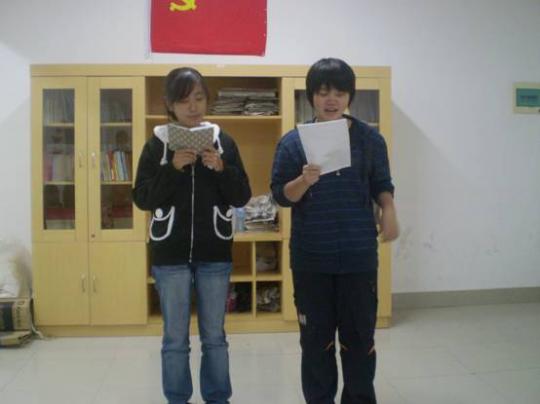 11月20日,我们班在13#4楼活动室举行了一次诗歌朗诵活动,虽然之前大家都没有太多的朗诵经历,但是活动当天大家都表现得很积极,每个宿舍都积极参与。