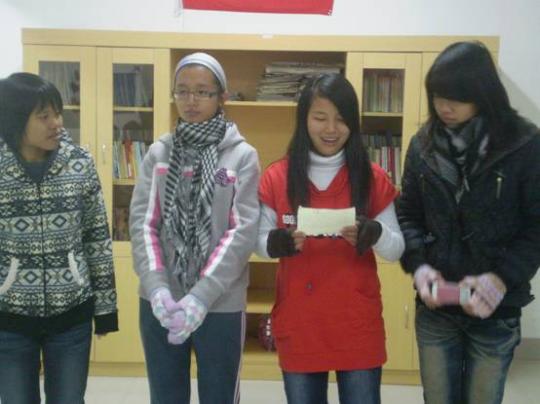 此次的诗歌朗诵,又再一次调动了我们每一个人的积极性,激发了我们的潜能.这个冬天很冷,但我们依然热情似火.我们期待着下一次班级集体活动的举行.