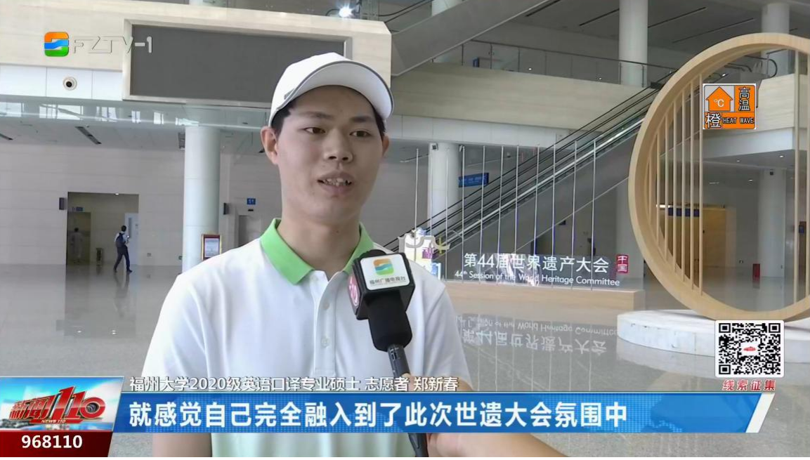 2020级英语口译专业硕士郑新春同学在接受福建卫视采访时表示:“穿上志愿者的衣服之后,感觉自己完全融入了本次世遗大会的氛围之中。作为学生党员,希望通过自己专业特长,带头做好志愿服务,让党旗在一线飘扬,向世界展示Av在线观看