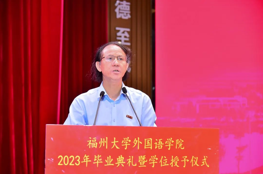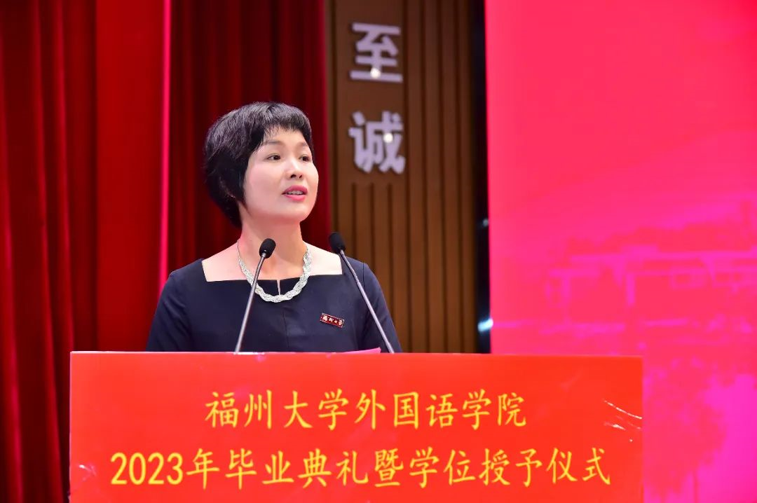 随后2023届本科生毕业生代表叶静怡同学、2020届本科毕业生暨2023届研究生毕业生代表赖月艳同学、毕业生家长代表傅火荣先生、教师代表郑丽钦博士、院长钟晓文教授依次上台发言。