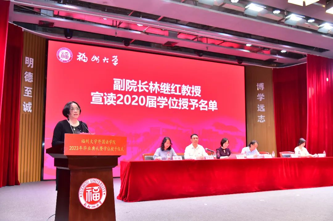 首先林继红副院长宣读2020届抗疫先进个人名单、2020届及2023届授予学位名单、优秀毕业生名单、班级联络员名单,并为2020届抗疫先进个人、2023届优秀毕业生、毕业生班级校友联络员颁发荣誉证书。