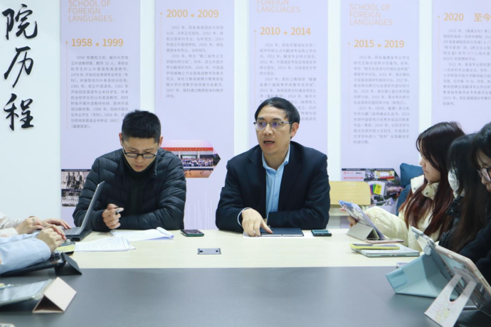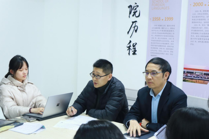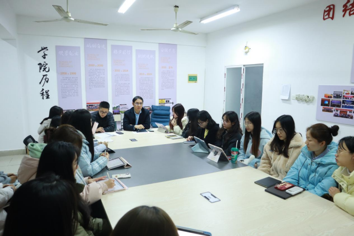 在一站式社区活动室举行2025年春季新学期外国语学院团委学生会学生干部会议。学院党委副书记、纪委书记蓝荣聪,院团委书记唐斌湖与院团委各部门负责人参与会议。