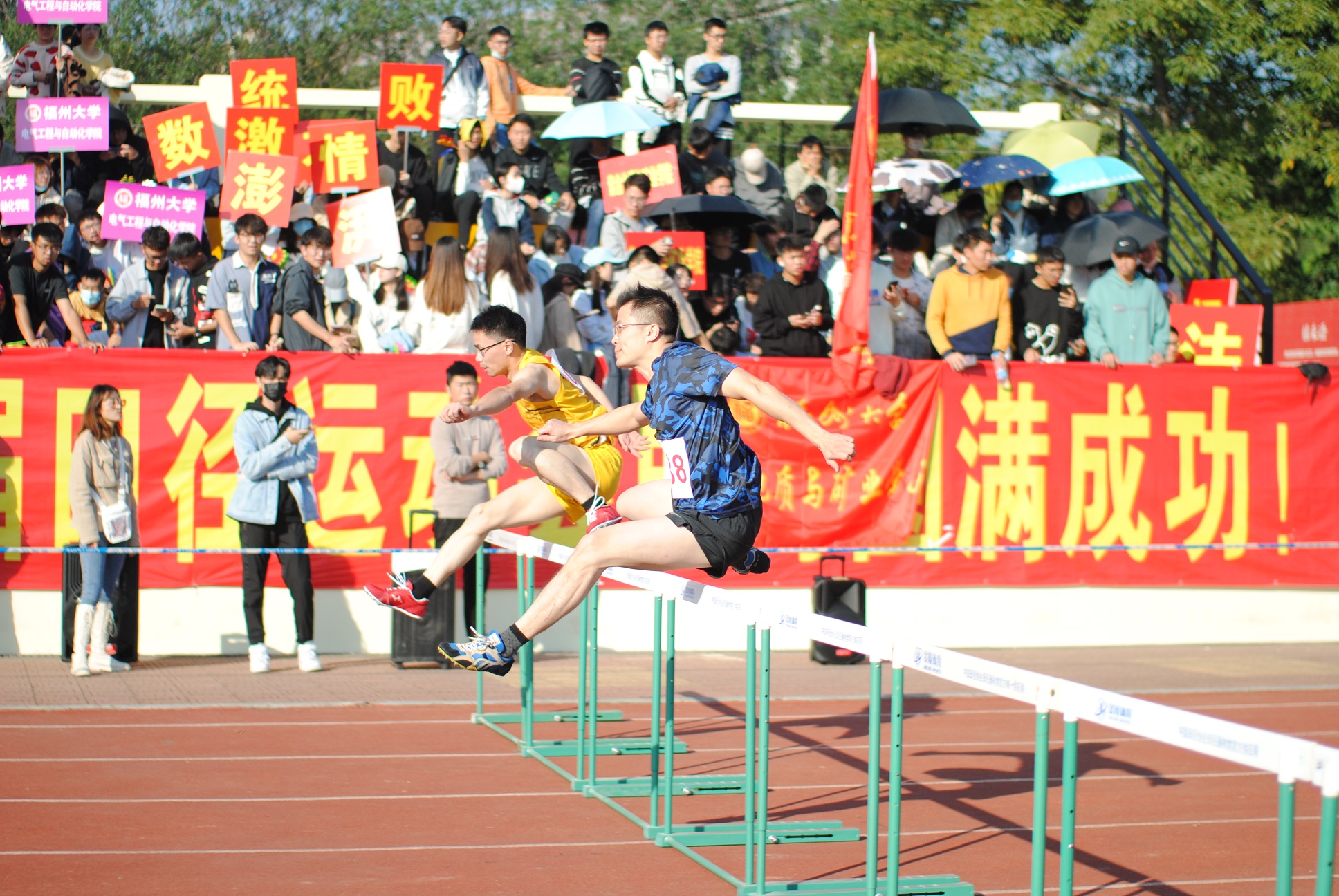 吴永昇老师的表现尤为出色。起跑线上,他如同一只准备展翅的雄鹰。随着一声发令枪响,他起跑、加速、起跳、跨越,这些动作流畅,一气呵成,10个高达腰际的栏架依次被他成功征服,最后像离弦之箭冲向终点,获得了亚军。
