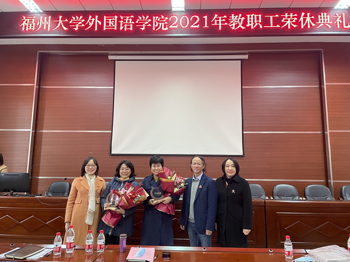 2021年荣休教师潘红老师、杨玉文老师分别怀着惜别之心回忆起她们在福大生活与工作的点点滴滴,表达了对学校、学院、同事们的感谢、感恩、祝福。她们表示退休后会继续为学校、学院发展竭尽全力发挥余热,并为学校、学院发展的美好未来送上了真诚的祝愿。