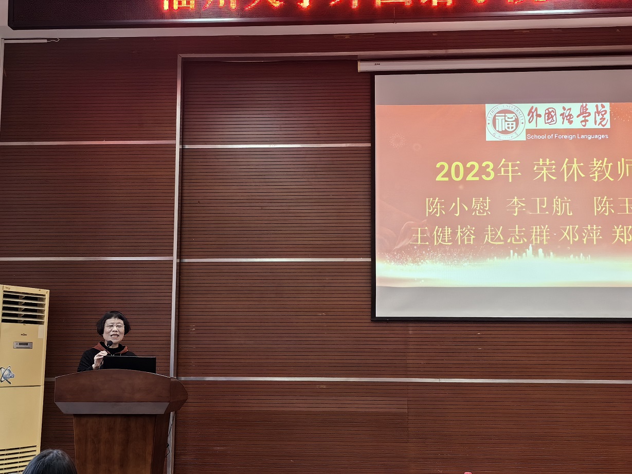 最后,钟晓文院长回顾了外国语学院的发展史,对2023年荣休的七位老师为学院发展做出的贡献表示崇高的敬意和由衷的感谢,祝福各位老师今后的生活更加幸福、万事如意。