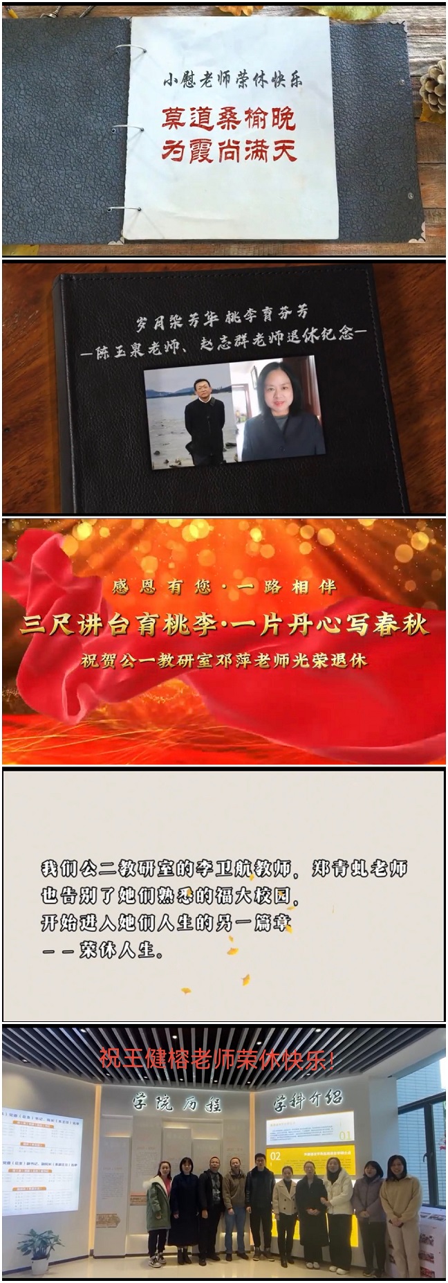 接着,与会人员一同观看了为荣休教职工精心制作的视频,回顾了他们在教育教学、管理服务等岗位上的奋斗历程,表达了对他们躬耕教学、勤育栋梁、甘于奉献的感谢,以及各系室同事们对荣休教职工的感恩与祝福。