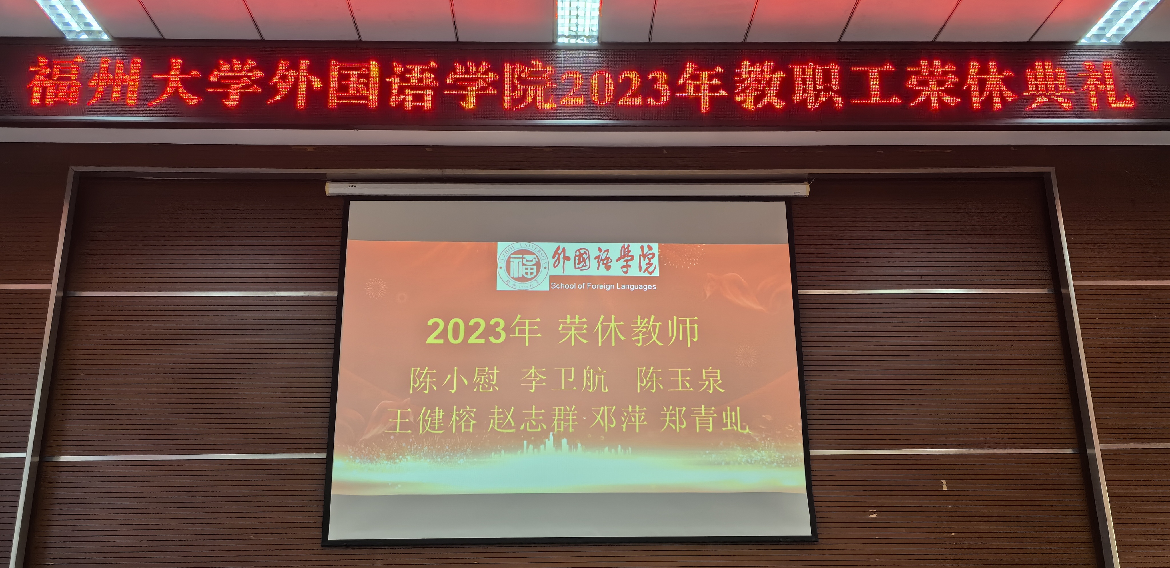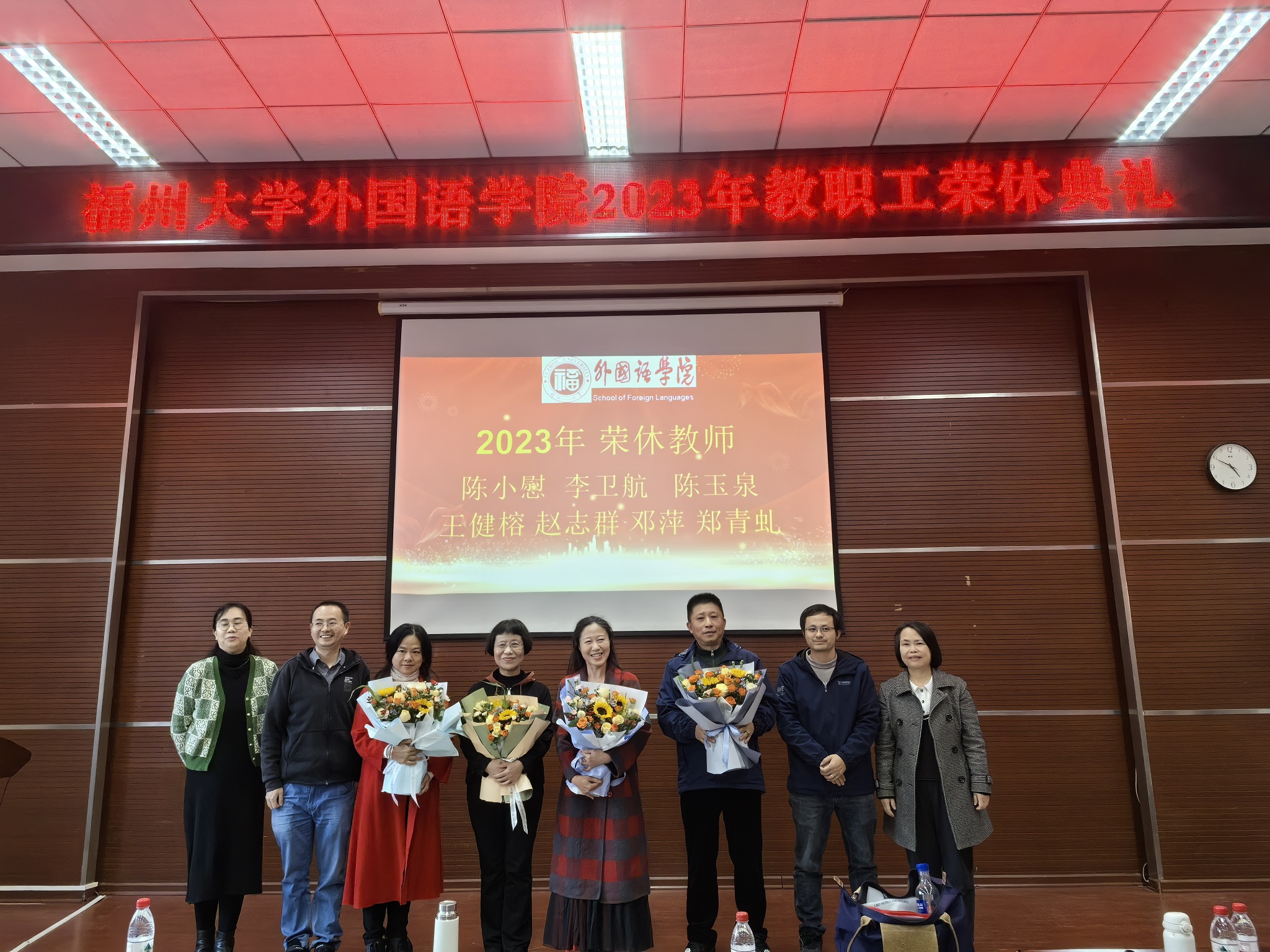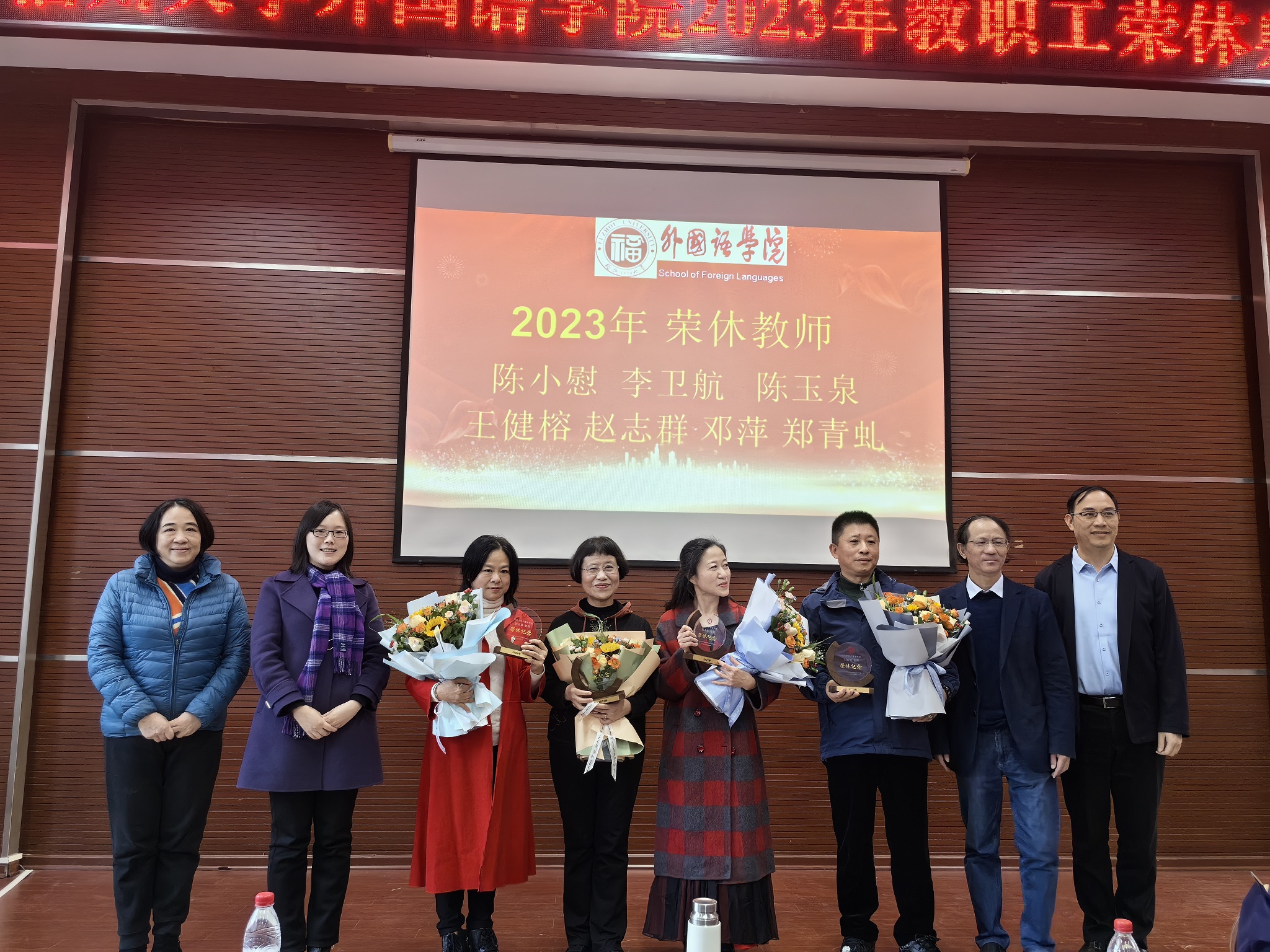 漫漫人生路,回首皆芳华。12月28日,外国语学院举办了一场隆重而温馨的荣休仪式,祝贺陈小慰、李卫航、陈玉泉、王健榕、赵志群、邓萍、郑青虬七位老师光荣退休。