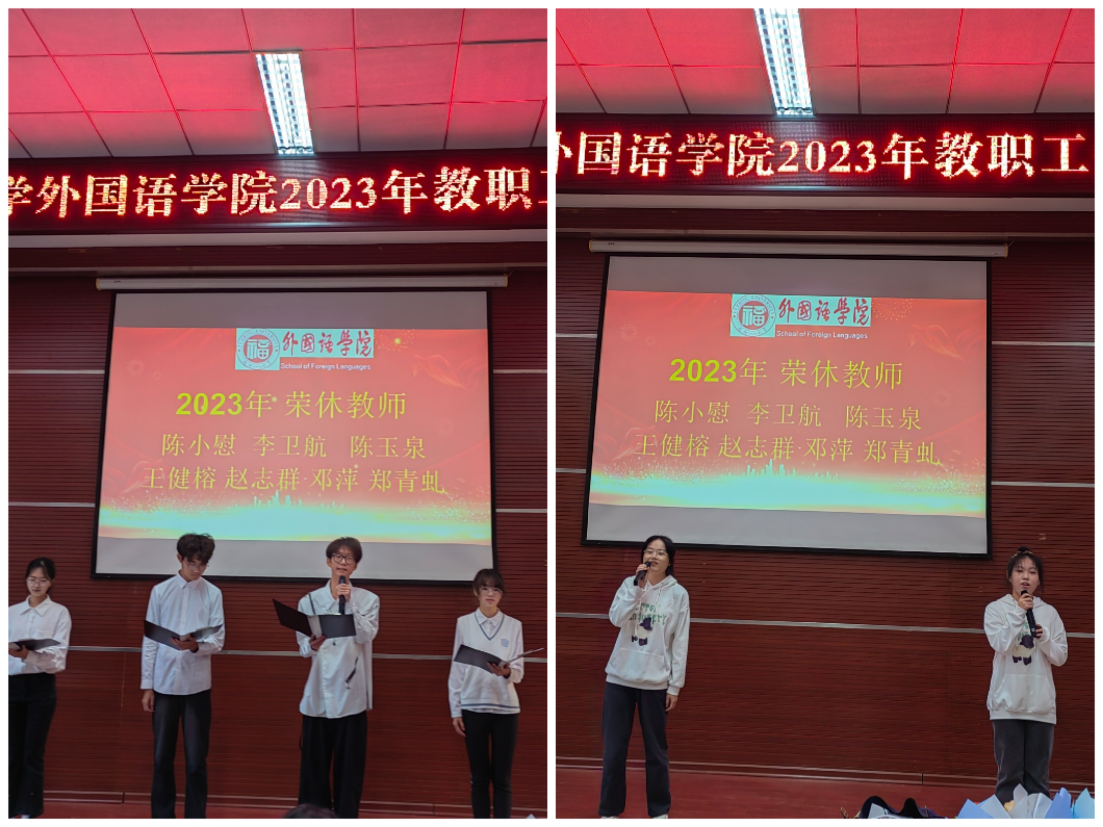 “种得人间桃李满,春风无地不开花。”欢送荣休教职工是一种仪式,是一种赞颂,更是一种传承。与会人员一致表示,学院的进步和成绩依靠一代又一代外语人的传承积淀,感谢老一辈外语人的坚守与付出。外国语学院全体教师将不忘初心,薪火相传,为学院事业发展建设贡献自己的力量。(叶青报道)