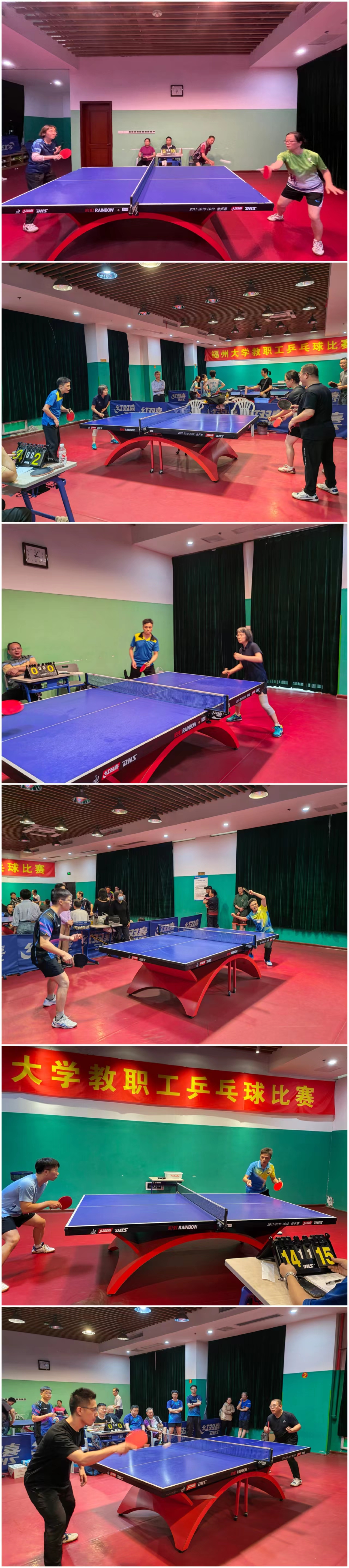 参与本届乒乓球赛的全校教职工达百余人。比赛共设有五个项目,分为小组循环赛和交叉淘汰赛两个阶段。外国语学院六名教职工运动员参加了四个项目的比赛。