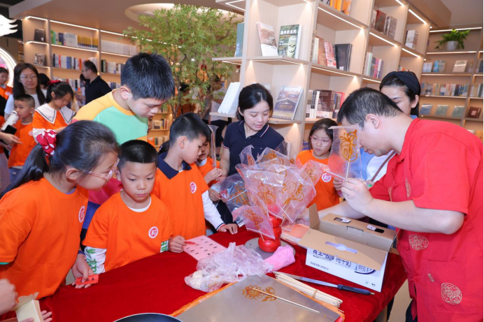 糖画,一种有温度的艺术。小朋友们亲眼目睹非遗传承人孙博轩老师以勺为笔、以糖为画,一笔一画绘制出形态各异的糖画作品,感受中华文化的独特韵味。