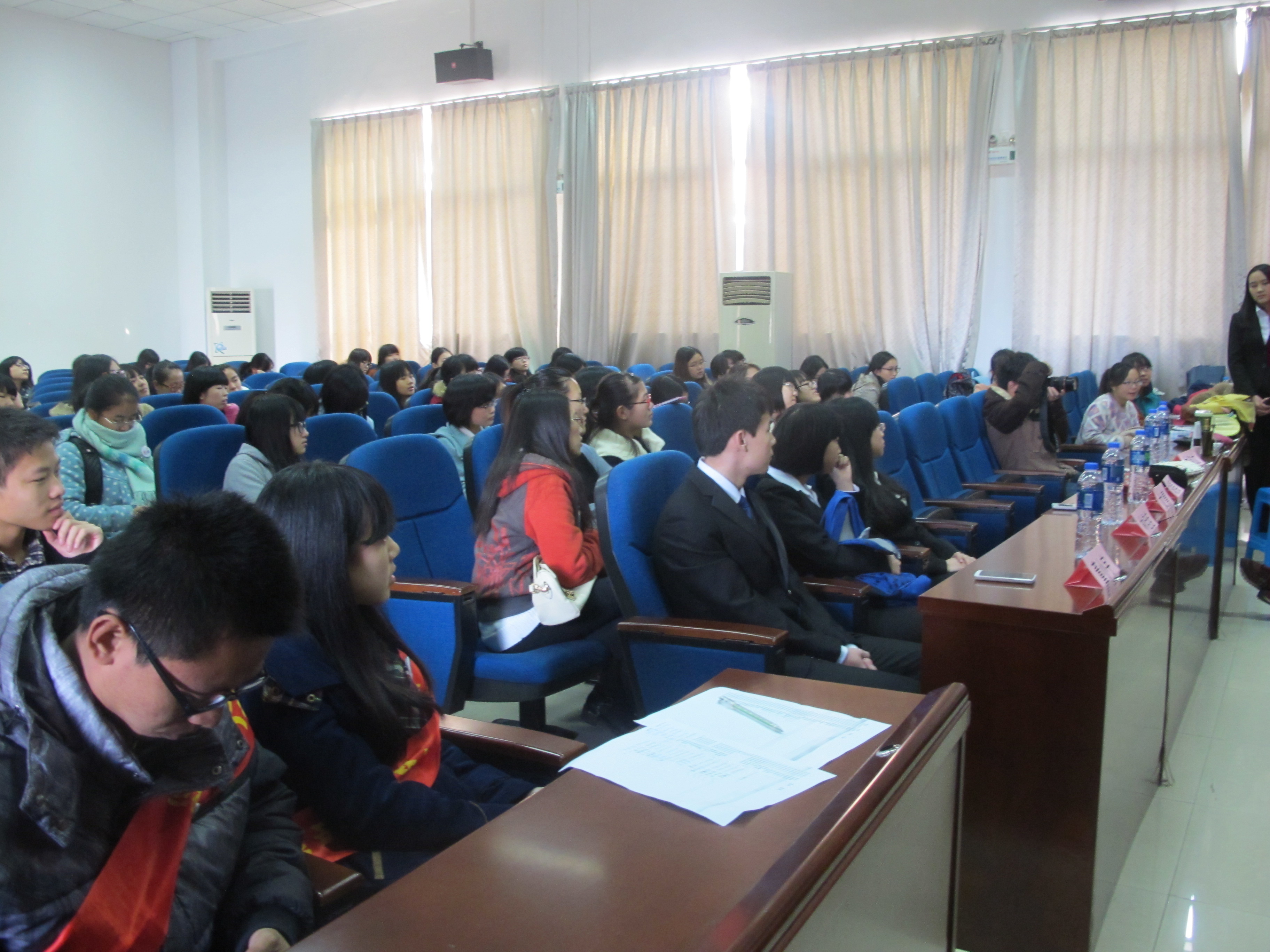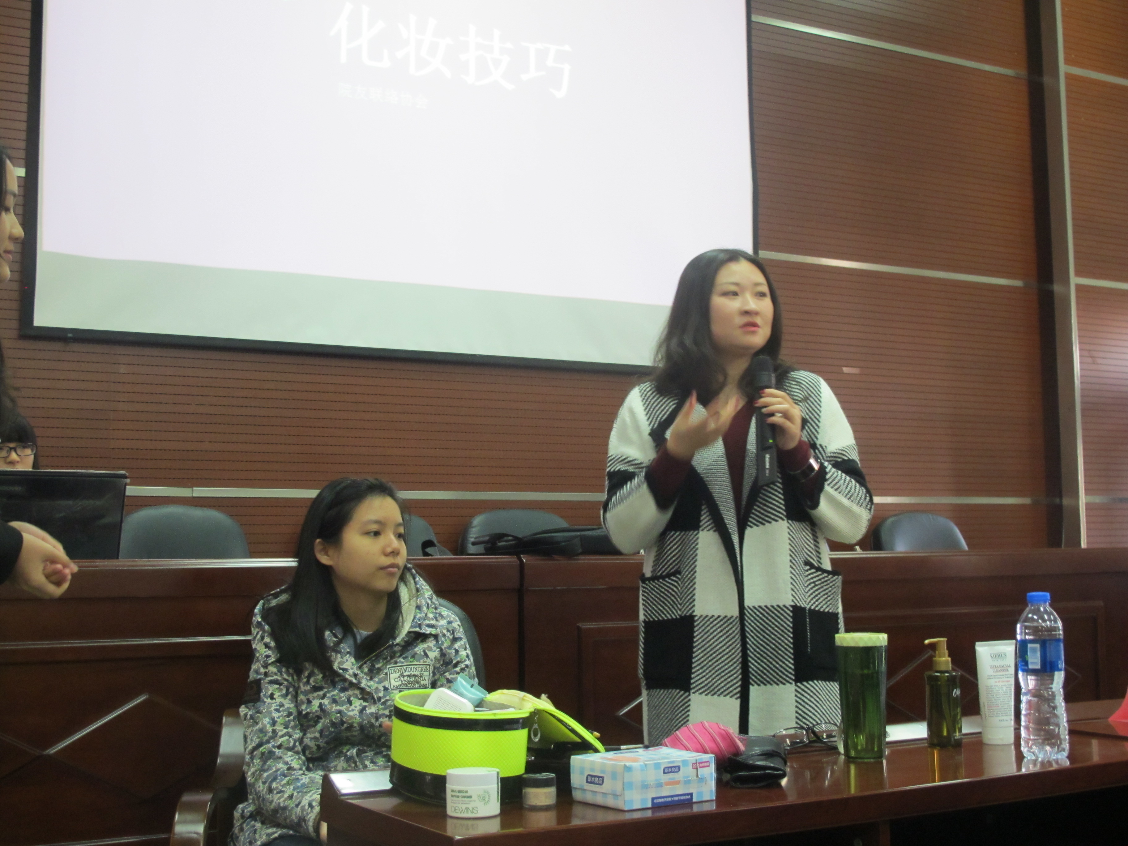 12月13日上午9时,由外国语学院院友联络协会主办的职场礼仪讲座在外国语学院院办会议室举行。本次讲座由外国语学院胡昊老师主讲,主要介绍了女性化妆保养,面试着装规范等交际礼仪知识,吸引了各个年级的学生前来观看。