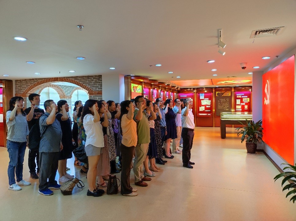全体党员在党旗前,庄严宣誓,重温入党誓词。