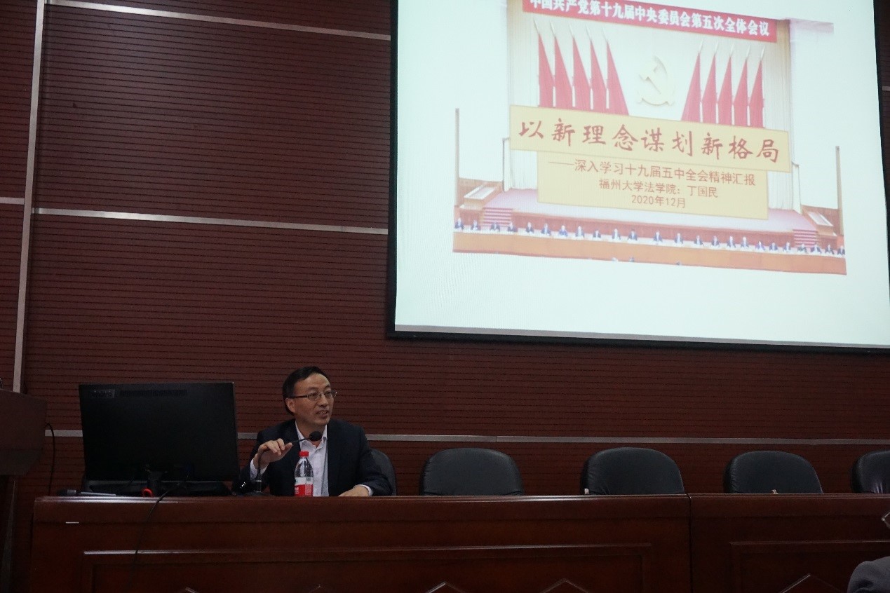 法学院博士生导师丁国民教授作宣讲报告。报告会由院党委林秋生书记主持,全体教职工和学生党员代表参加。