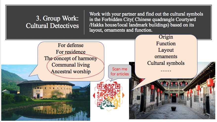 教师团队积极响应国家和学校的课程思政教学改革,以建筑为主题,在对素材融会贯通,精心筛选的基础上,以产出导向法进行混合式教学设计。在设计中重点突出建筑中蕴含的文化符号,思路清晰,结构严谨,教学方法多样。在教学目标和教学内容中,将语言能力培养与思政教育相结合,在教学中引导学生发现建筑中的中国故事,解读中国建筑蕴含的文化符号,建立文化自信,增强民族自豪感,从而实现知识传授和价值引领相统一,教书与育人相统一。(绳薇报道)