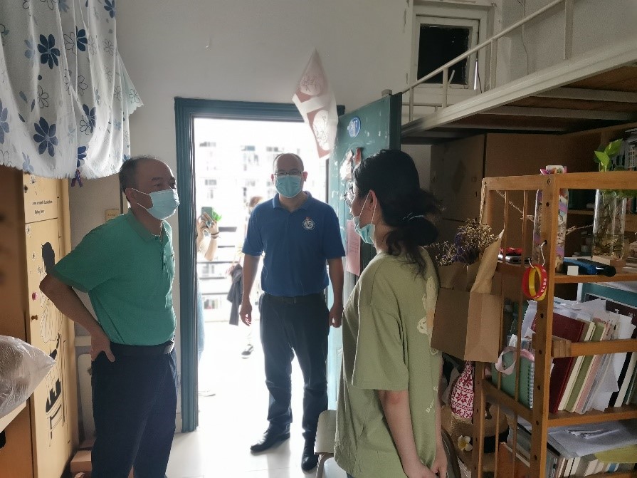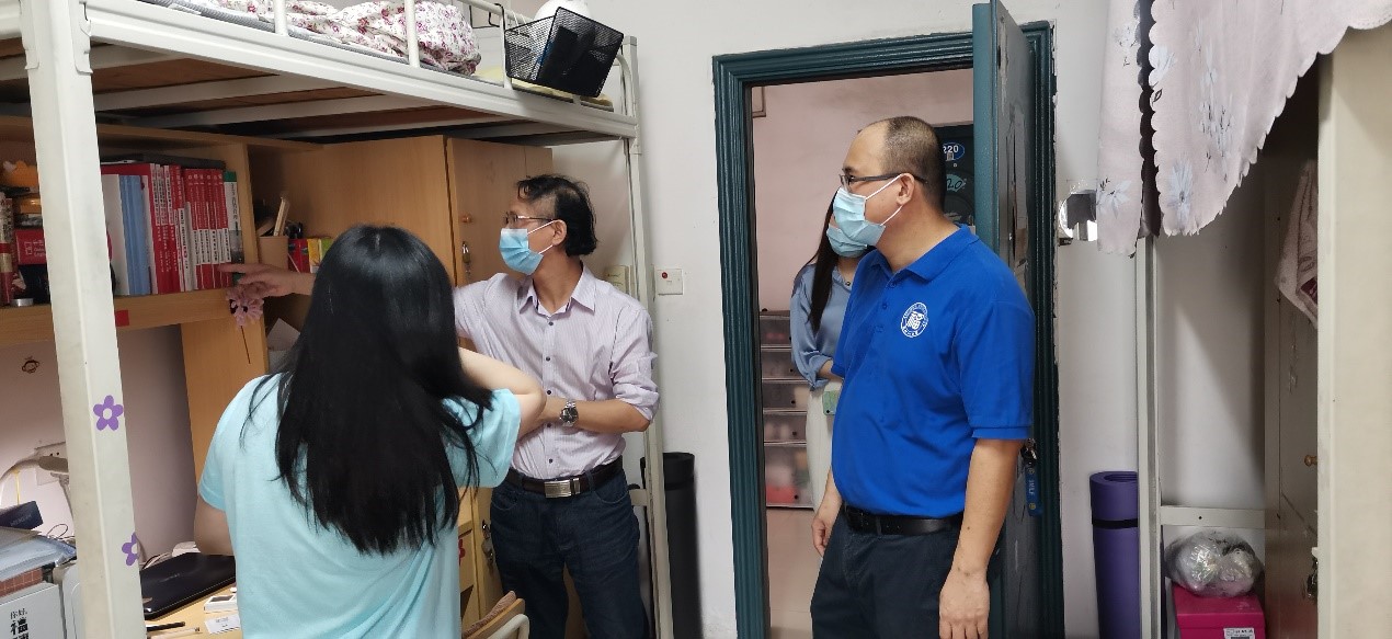 学生返校期间,院党委林秋生书记、院长钟晓文教授带领院行政办、学工办同志走访学生宿舍,关心返校学子,了解其身体、心理状况以及学习和生活上的需求,并叮嘱同学们要严格遵守学校和学院的各项防疫规范,做好自我防护、科学防控;