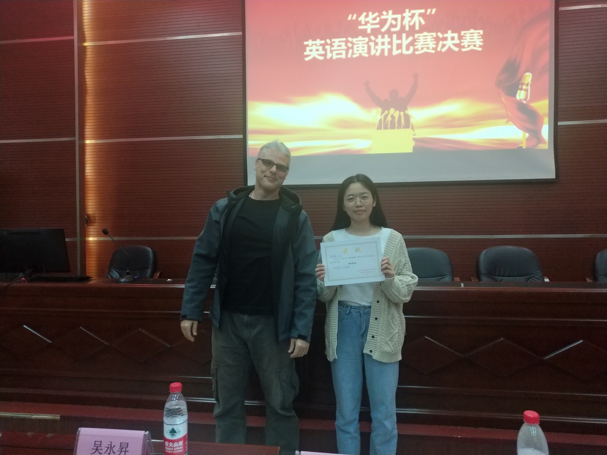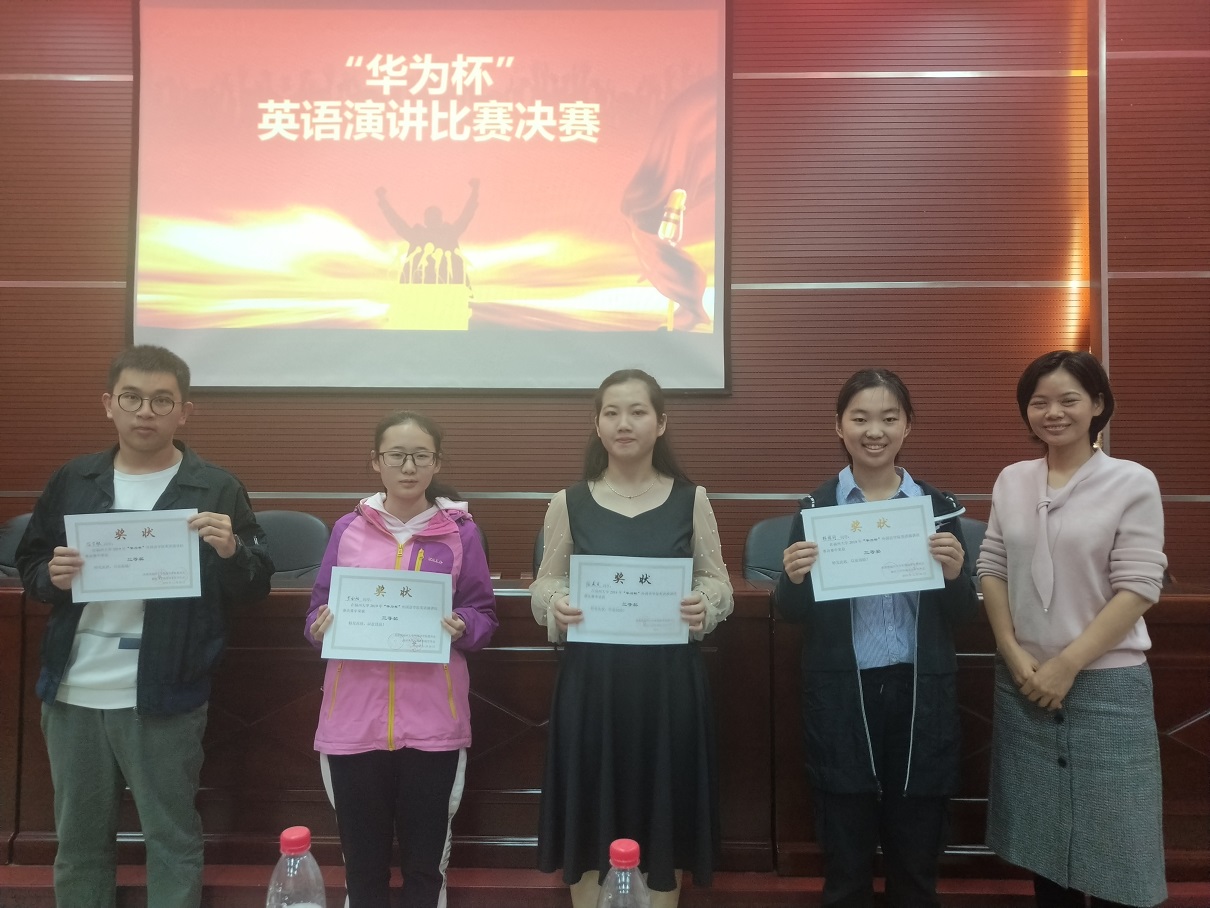 承办的"华为杯"英语演讲比赛于外国语学院三楼会议室顺利举办,英语系外教Michael博士、英语系副主任吴永昇副教授、学科竞赛赛事总负责人戴力芬副教授、李金云博士和余艳老师担任本次比赛的评委。外教Michael担任提问嘉宾和点评嘉宾,他的机警提问和精彩点评获得满堂喝彩。