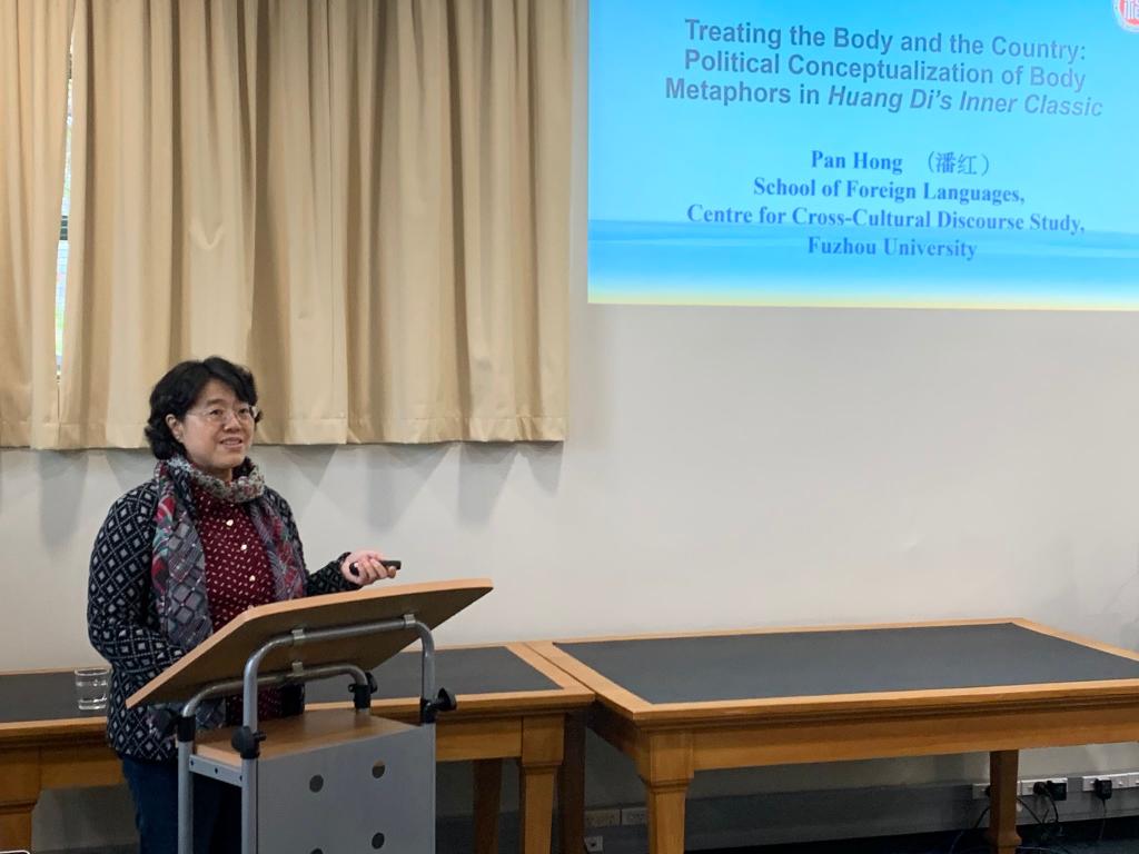 潘红教授应邀做了会议主旨发言:治病与治国:《黄帝内经》身体隐喻中的政治理念。论文以话语研究的视角解析《黄帝内经》中独特的身体政治隐喻,特别是从社会官职隐喻等入手,通过经典话语互文,探讨《黄帝内经》身体隐喻所蕴含的意识形态性、思维模式及其与社会治理理念的关系,审视蕴藏在《黄帝内经》中的生命人学精神及其独特的哲学深意。潘红教授新颖的研究选题、富有创意的分析方法与独到的理论观点引发与会学者的强烈兴趣,与会学者纷纷提问,广泛探讨。