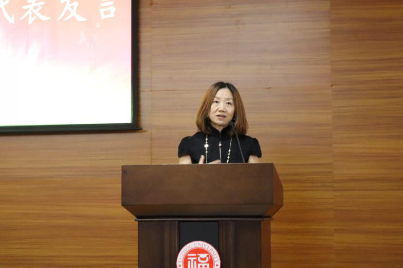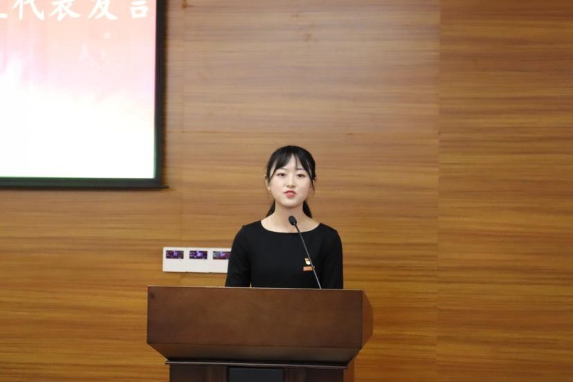 朱趙谊、黄紫菁同学分别作为本科生和研究生新生代表上台发言。她们发表了对大学生活的憧憬和立志努力研学的决心,决意以亲身践行“明德至诚,博学远志”的校训。教师代表叶颖博士发言,她给新生提出了切实意见与建议并代表全体外国语学院教师,向新生们承诺会恪守师道,倾己所有,尽心尽力履行传道、授业、解惑的职责。