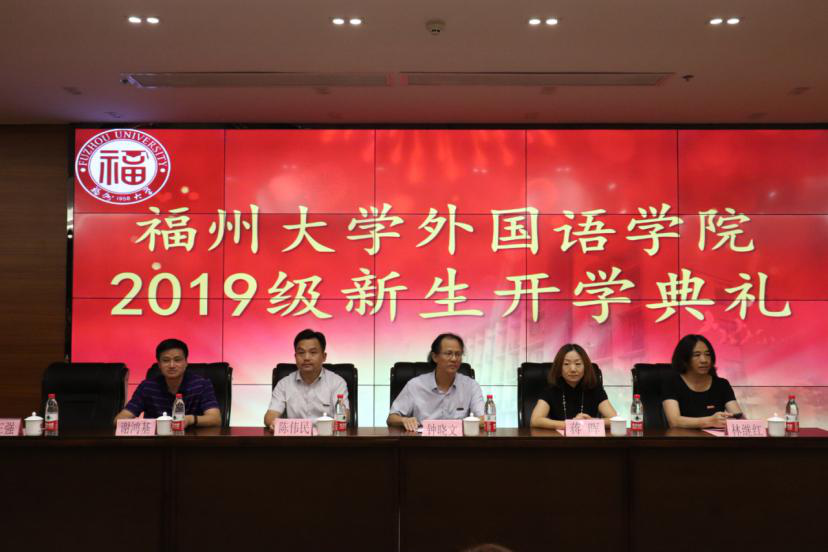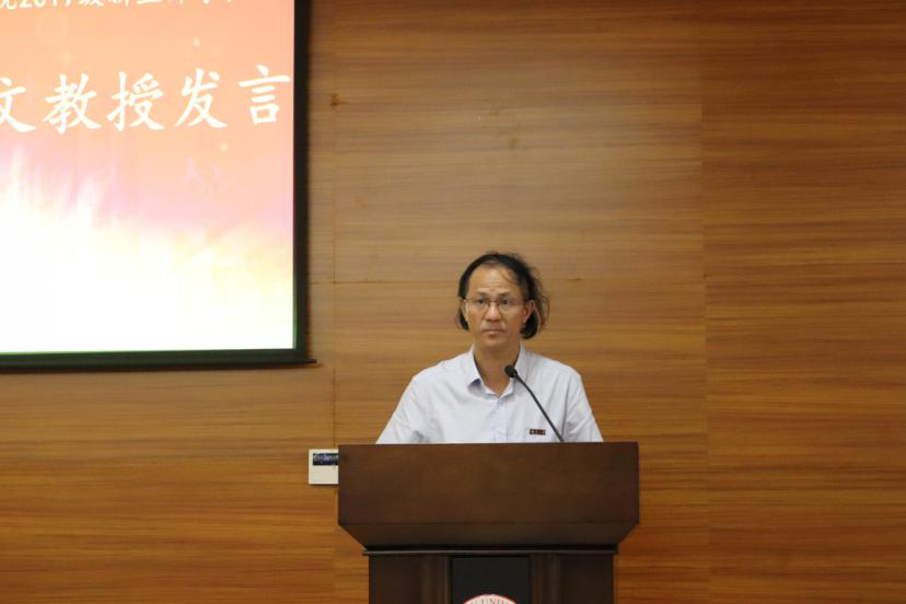 副院长钟晓文在典礼上发表讲话。他首先对2019级新同学的到来表示热烈的欢迎和衷心的祝贺。他从外国语学院的历史使命、文化底蕴、办学特色、人才培养等方面向2019级新生介绍了外国语学院的发展概况。同时也向新生提出了三点殷切希望:一是要了解外语专业的要求,夯实专业技能,学好学精外语;二是要明白学习外语的意义,以外语学习为契机获得更宽广的视野;三是要明确外语人肩负的爱国使命,用所学知识讲好中国故事,向全世界介绍中华民族的蓬勃发展与伟大复兴。
