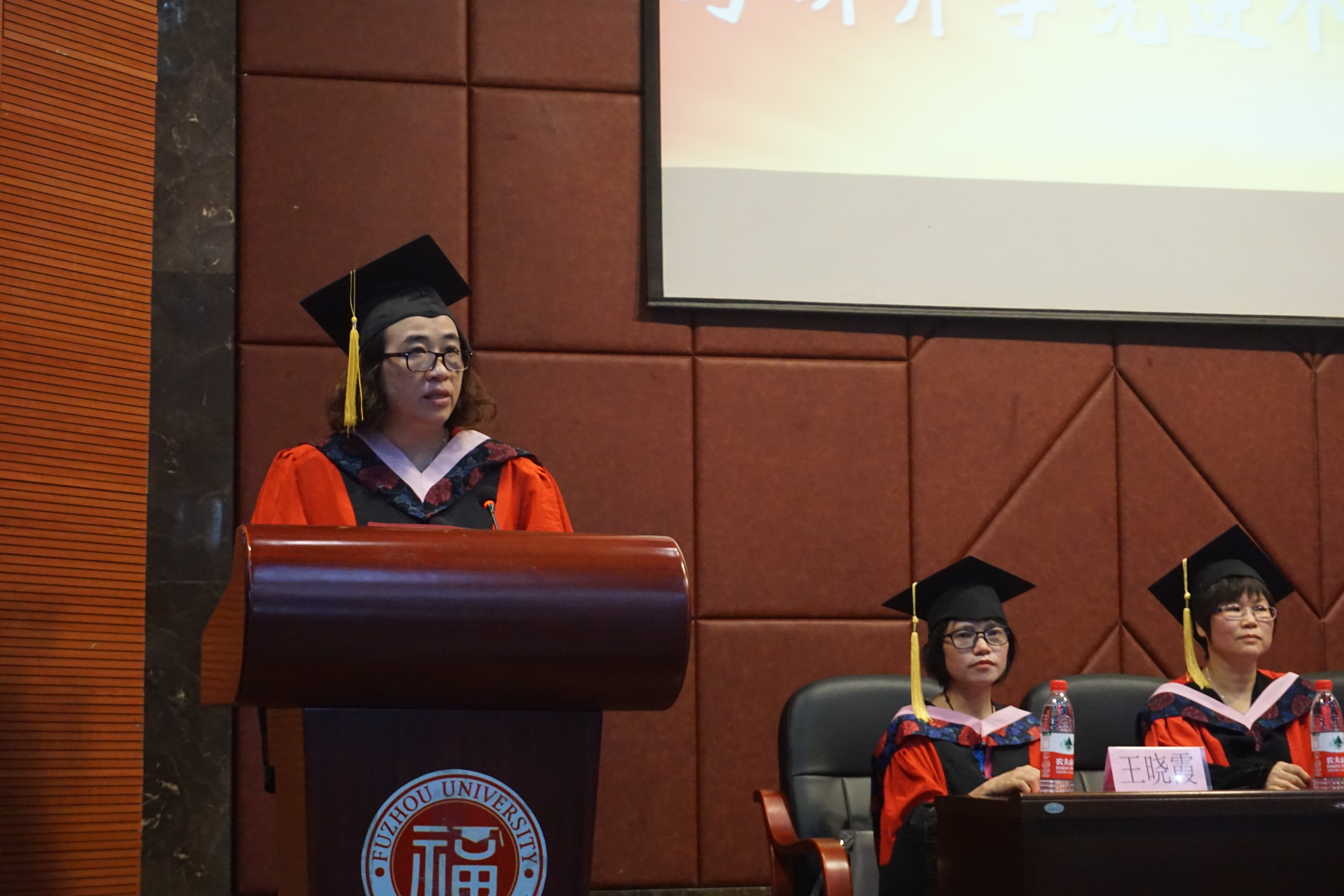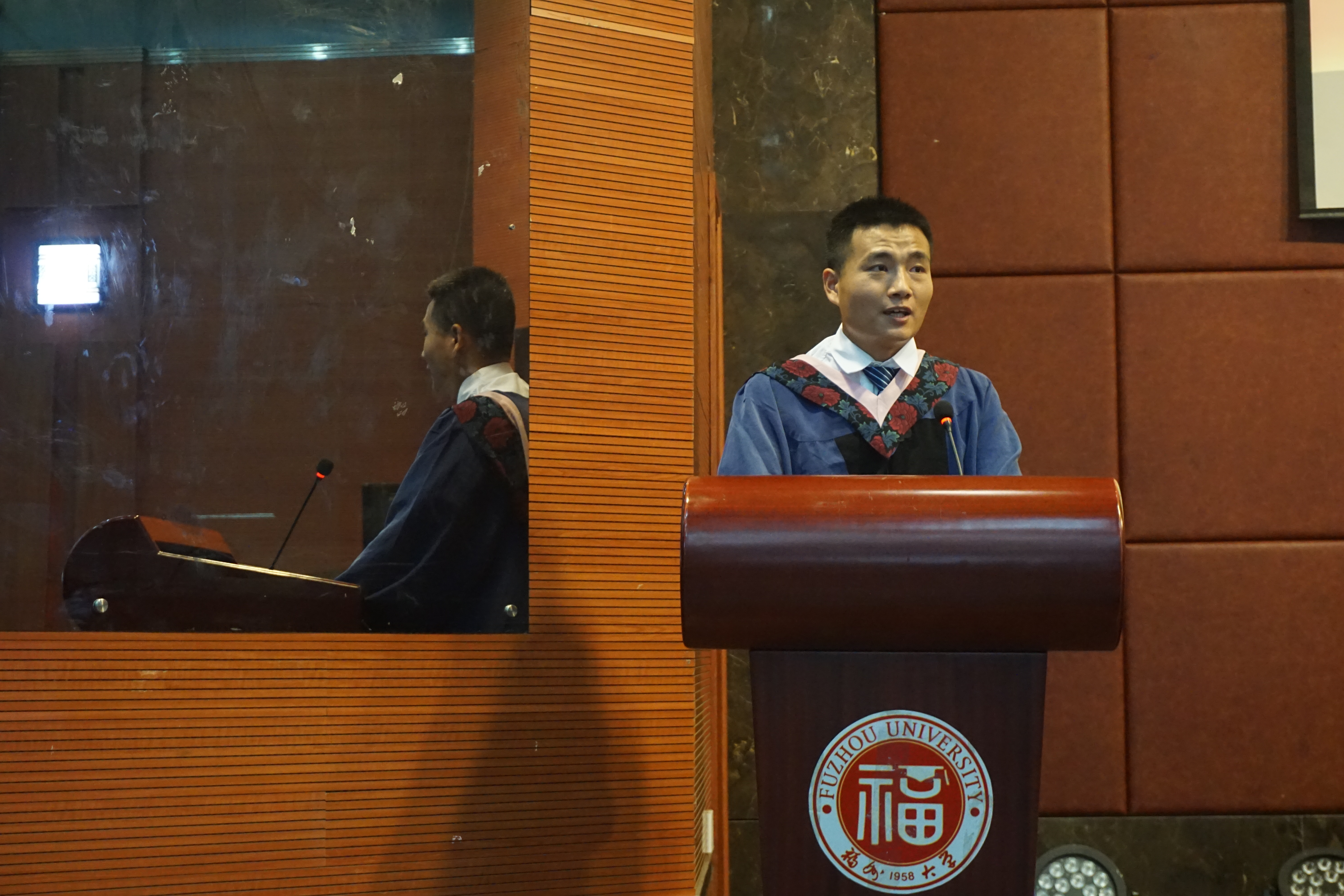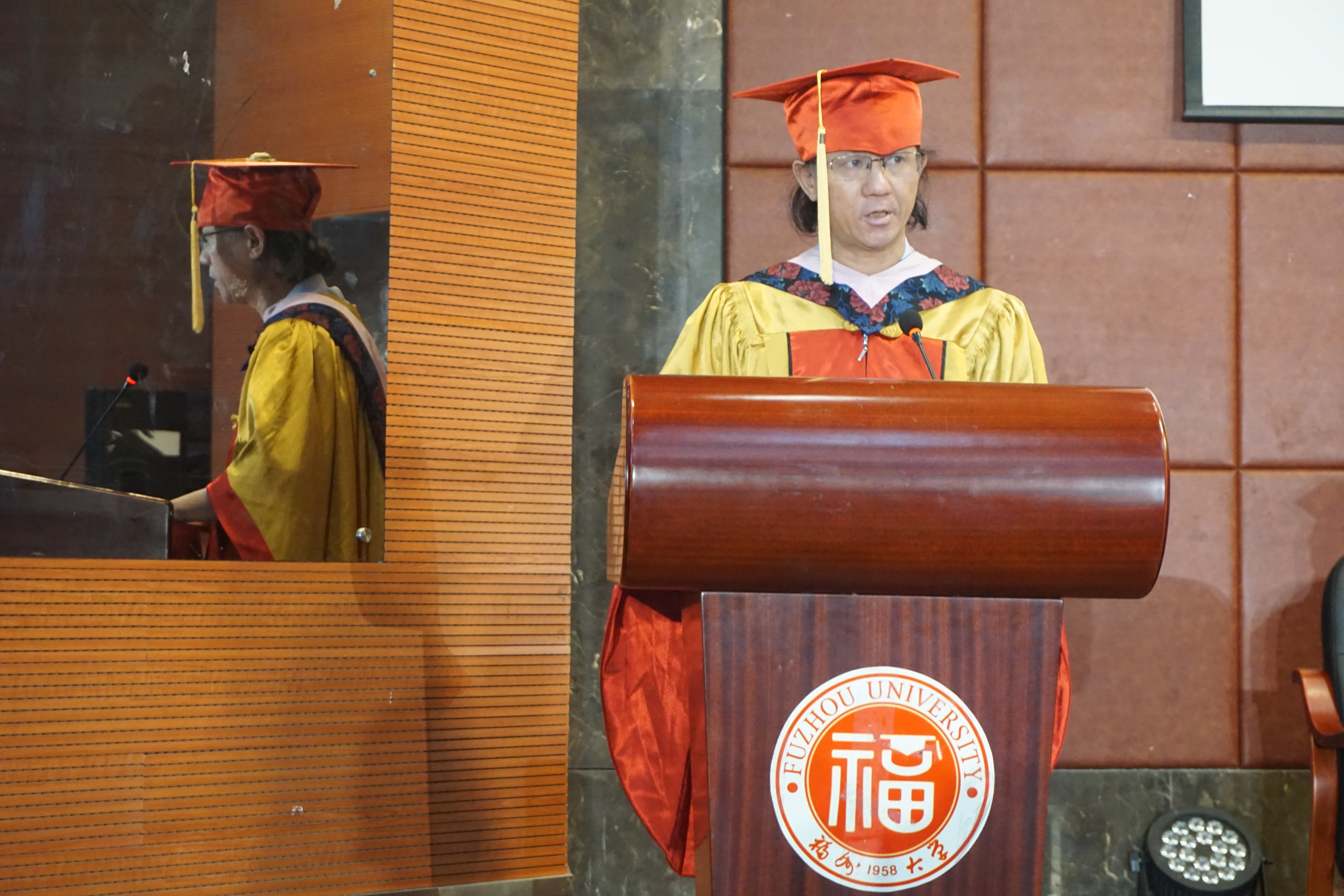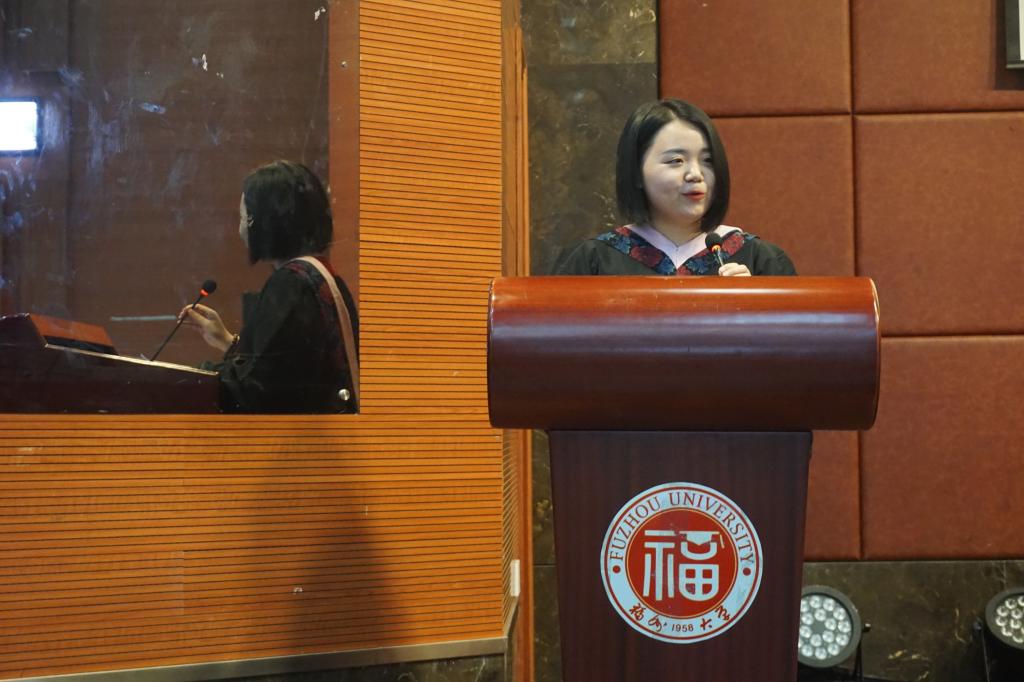 “福大外院的符号,不是一个固步自封的符号,不是让你沉湎过往的符号。这只是一个起点,通向明天各种可能的起点。”负责学院行政工作的副院长钟晓文教授上台发表了临别赠言。他说道,2019届意味着一个人生阶段的结束,意味着重新制定自己的学习计划与人生规划,更意味着新的担当、责任与使命,同时他也希望同学们不忘外院,常回外院。