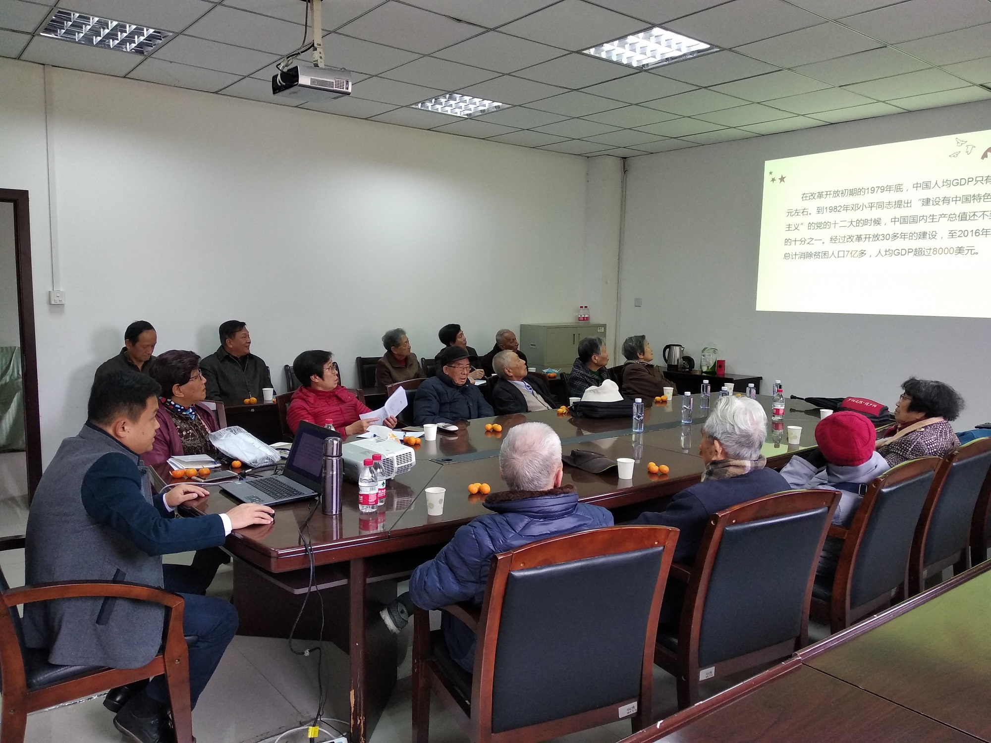 离退休老同志上了一堂题为《新时代,“新”在哪里——十九大精神学习心得》的专题党课。