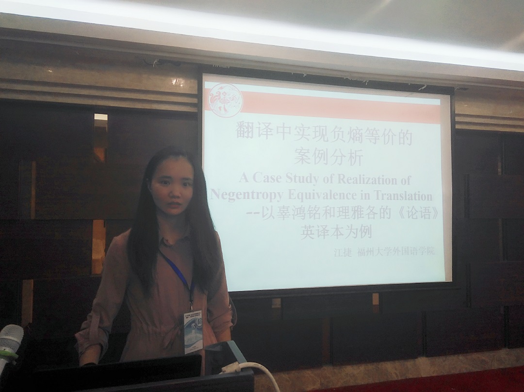 黄慧敏同学在“文体学与外语教学、多模态文体学研究”小组宣读了论文《民国早期的女性身份建构:< 东方杂志>商品广告的多模态批评话语分析》;何根忠同学在“文体学与跨文化话语研究”小组宣读了论文《求方抑或盗火:晚清首版< 华盛顿全传>底本之谜新探》;罗珊珊同学在“认知文体学、功能文体学、语用文体学”小组宣读了论文《生态翻译学视阈下福建省5A级景区旅游文本英译研究》;江捷同学在“非文学语篇研究”小组宣读了论文《翻译中实现负熵等价的案例分析》。