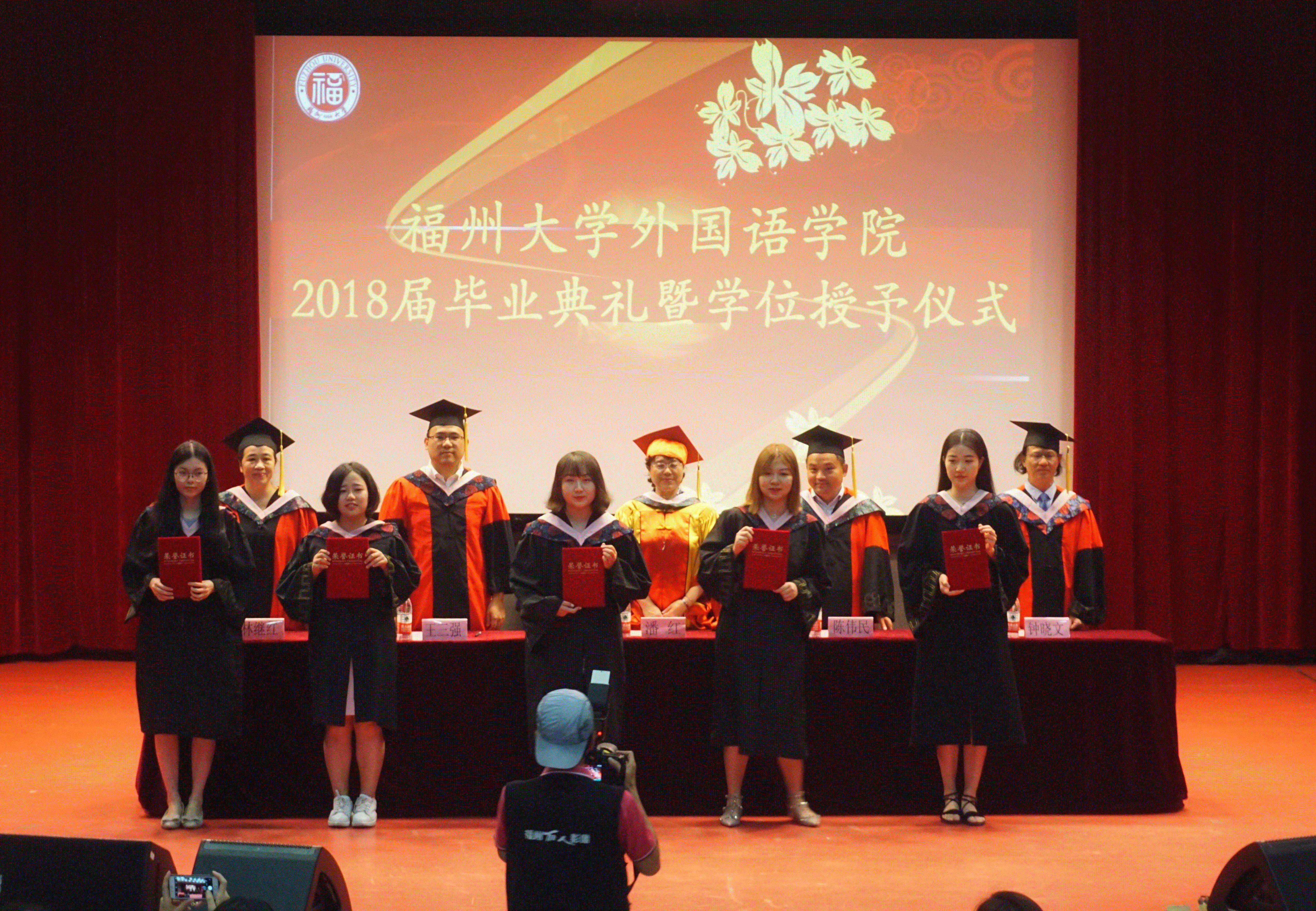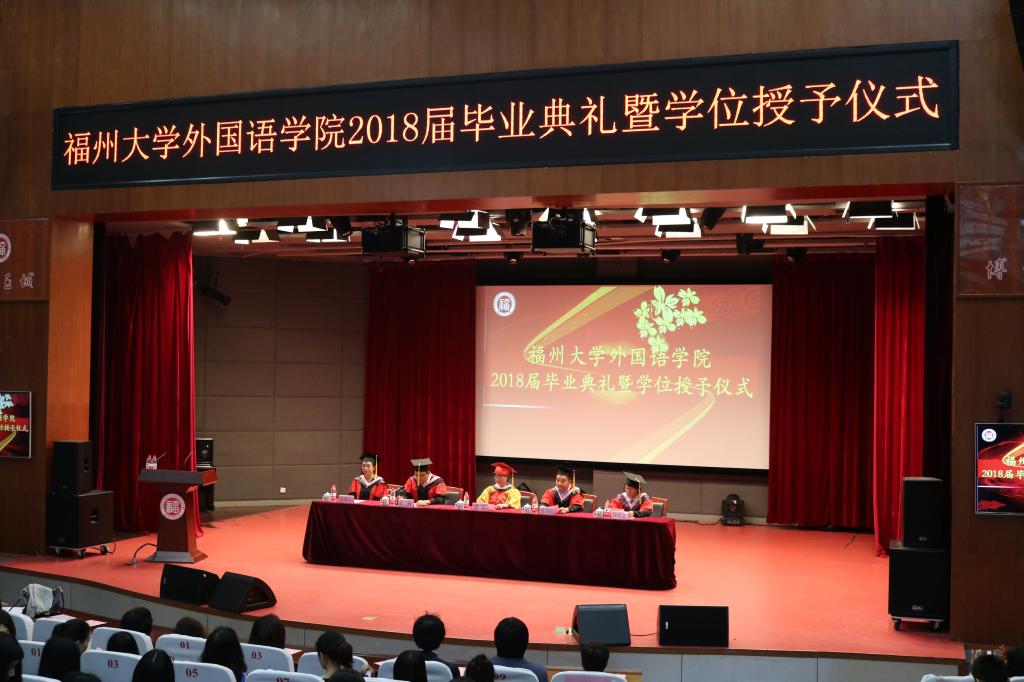 在图书馆博学厅隆重举行2018届毕业典礼暨学位授予仪式。院领导陈伟民书记、潘红院长、王三强副书记、钟晓文副院长、林继红副院长及各系、教研室负责人出席典礼。