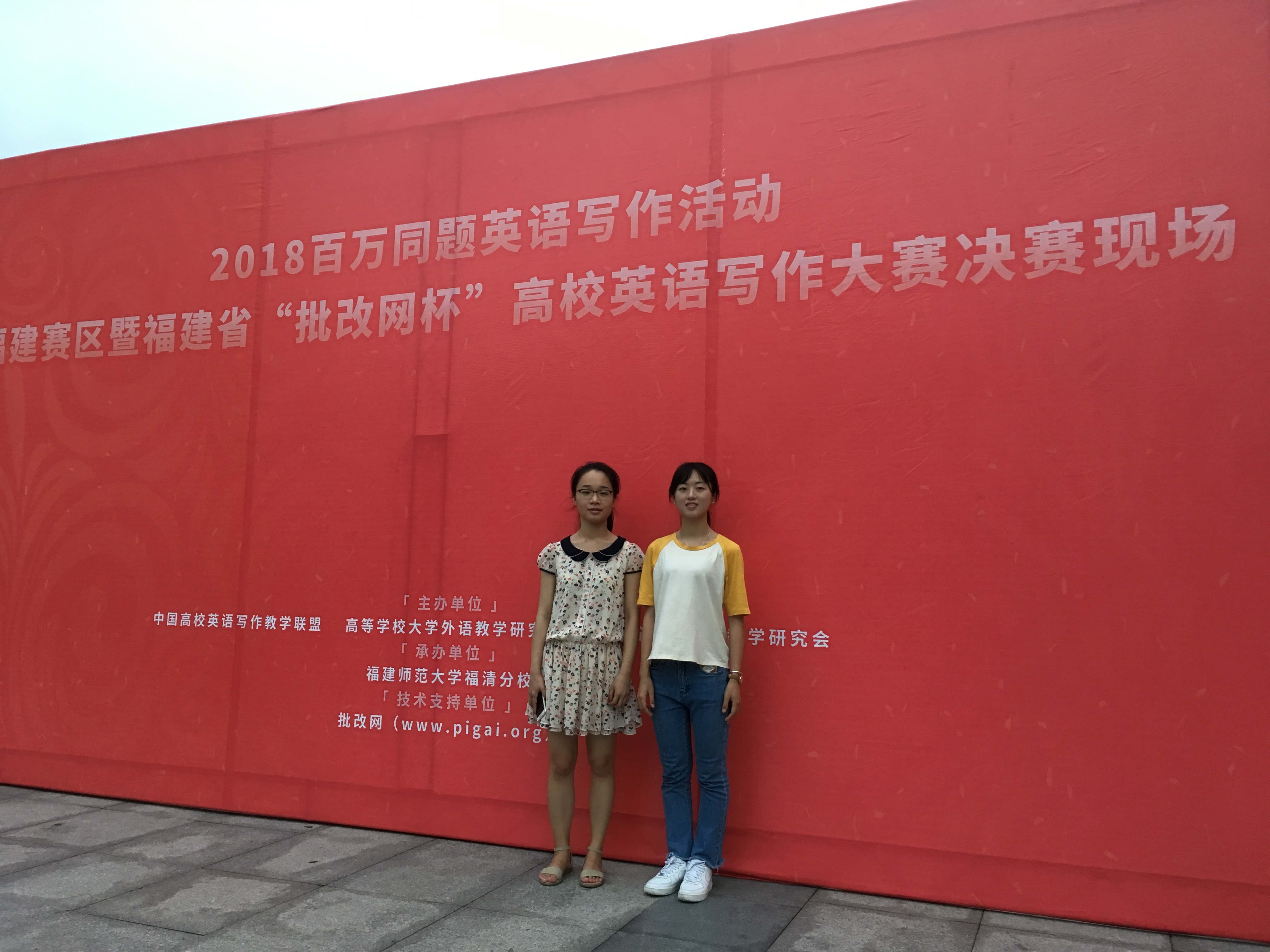 2018年6月23,由中国高校英语写作教学联盟、高等学校大学外语教学研究会、福建省大学外语教学研究会联合主办,由福建师范大学福清分校承办,批改网提供全程技术支持协办的2018百万同题英语写作活动福建赛区暨福建省“批改网杯”高校英语写作大赛决赛完满结束。在指导老师吴永昇带领下,外国语学院派出的两位选手,英专大三的黄紫菁和王思思表现出色,双双获得本科组一等奖。据悉此次比赛,我省43所高校,494位老师,近3万5千名大学生参加了初赛。(吴永昇报道)