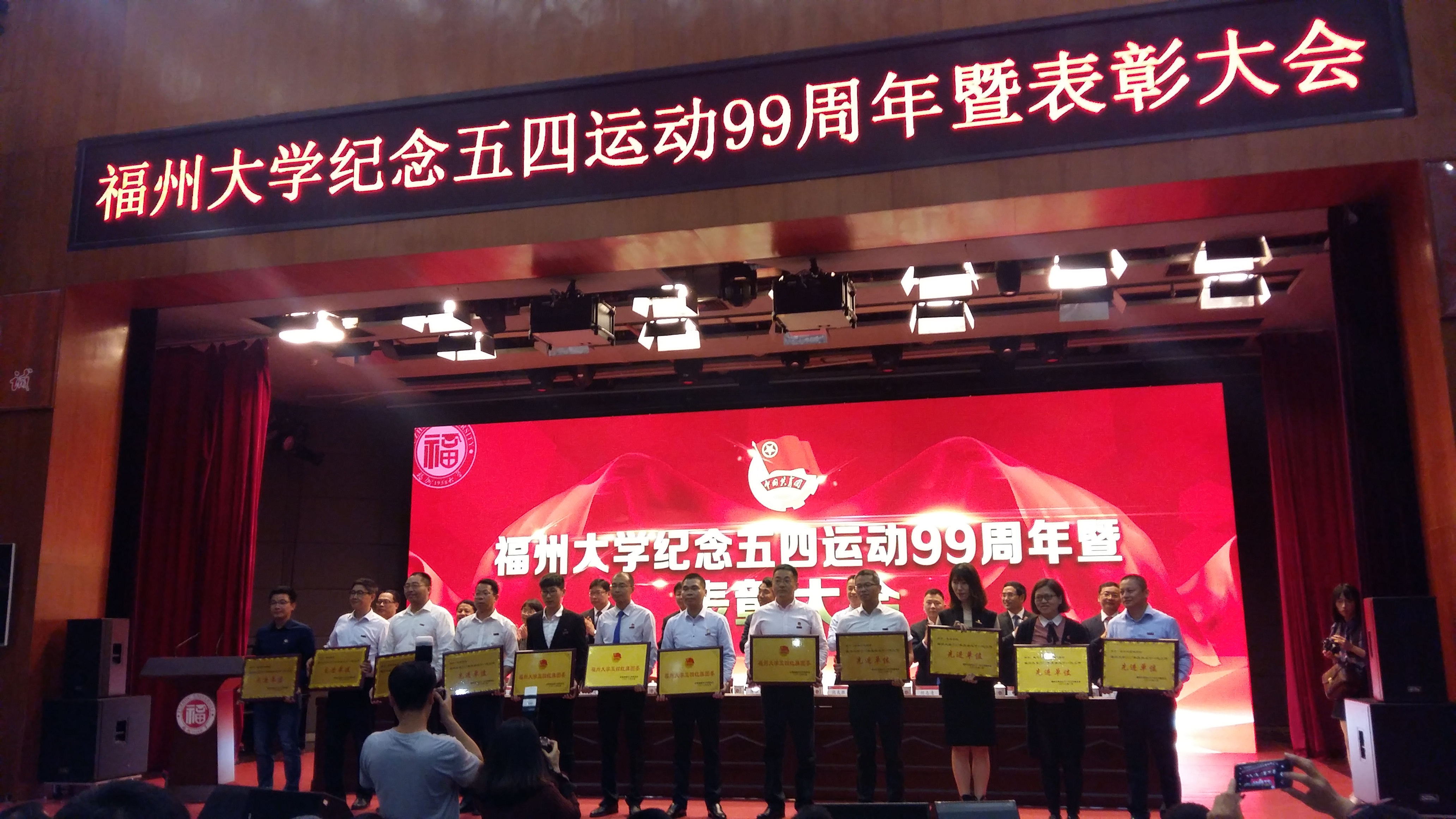 5月3日上午,Av在线观看 纪念五四运动99周年暨表彰大会在图书馆博学厅隆重举行。Av在线观看 团委喜获校五四红旗团委(全校仅四个学院团委荣获此称号)!同时王晓霞老师获校青年五四奖章,15级本科生赖慧宁荣获十佳团干部,15级本科生黄紫菁荣获阳光奖学金,16级本科生陈庆龄荣获厦航奖学金!(报道人唐斌湖)