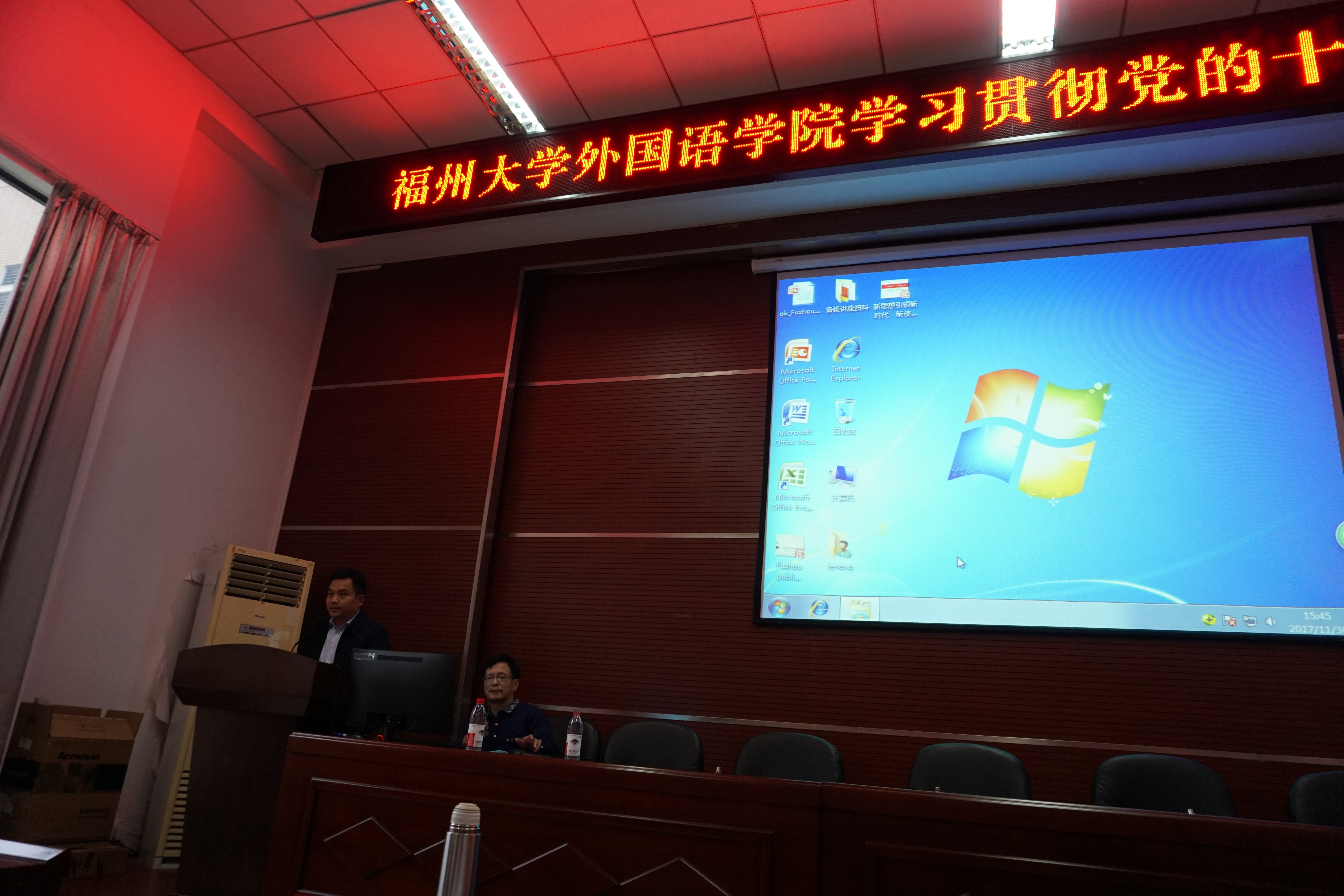 成功举办学习贯彻党的十九大精神系列专题讲座。学院党委陈伟民副书记(主持)出席并主持会议,全院师生党员、入党积极分子聆听讲座。