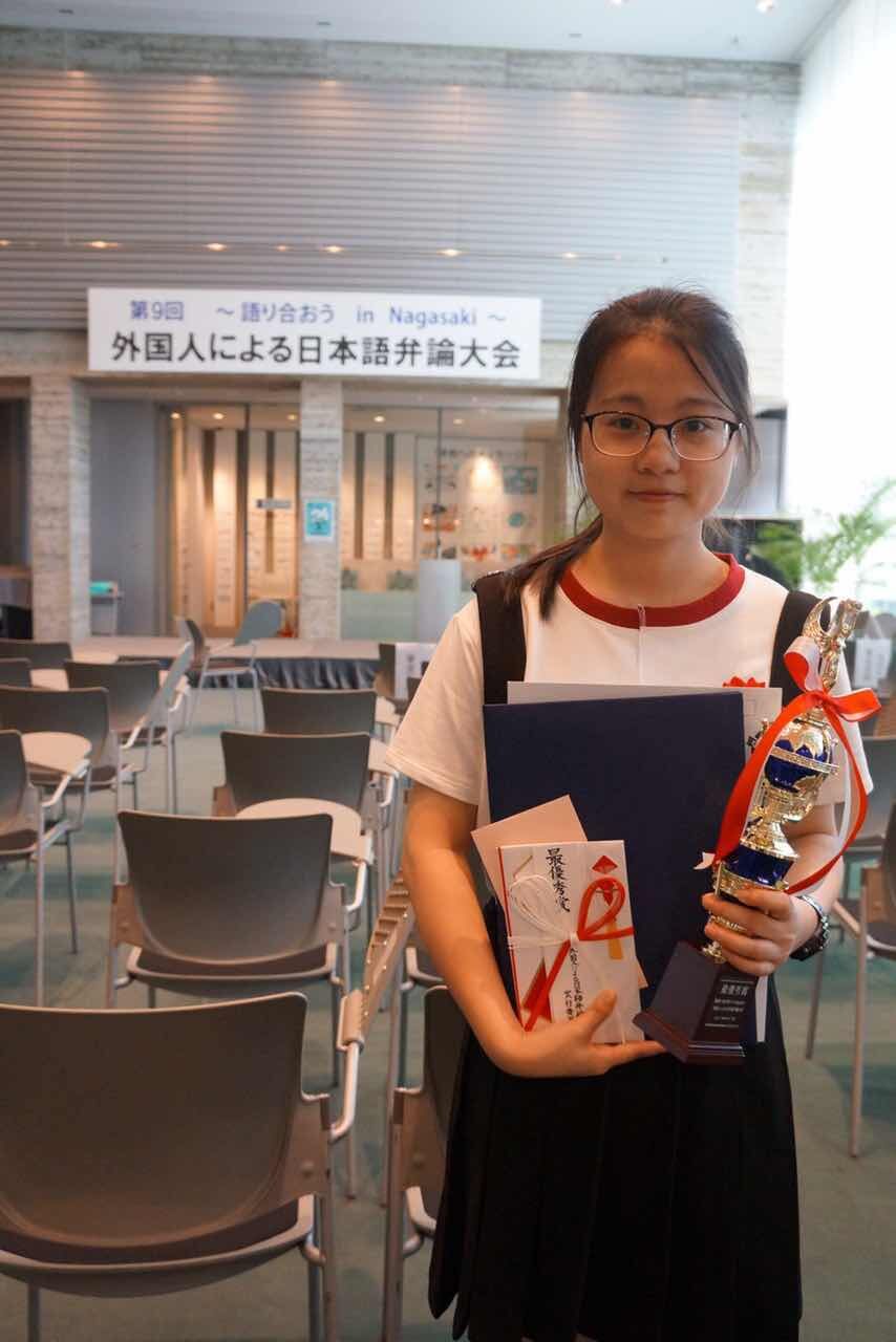 赴长崎大学交换留学生郑雪萍同学以《成为构筑中日和平之石》(日中の平和を築く石になる)为题的精彩演讲,博得了评委与观众的一致好评,荣获第一名的好成绩。