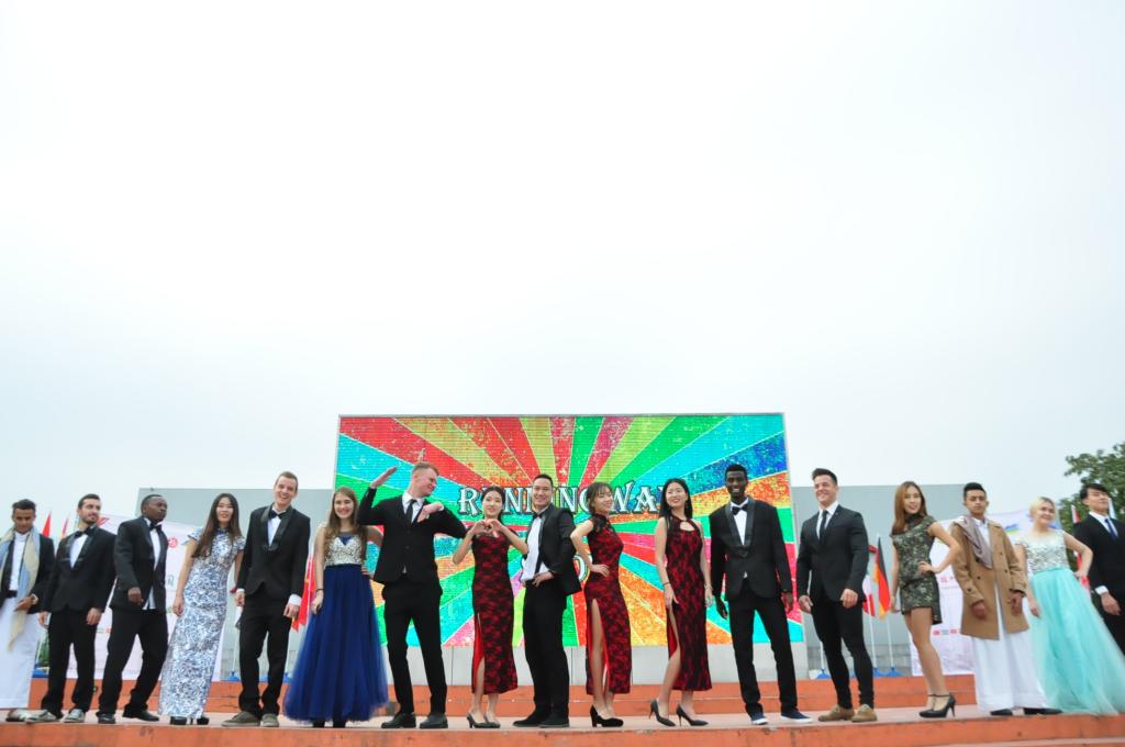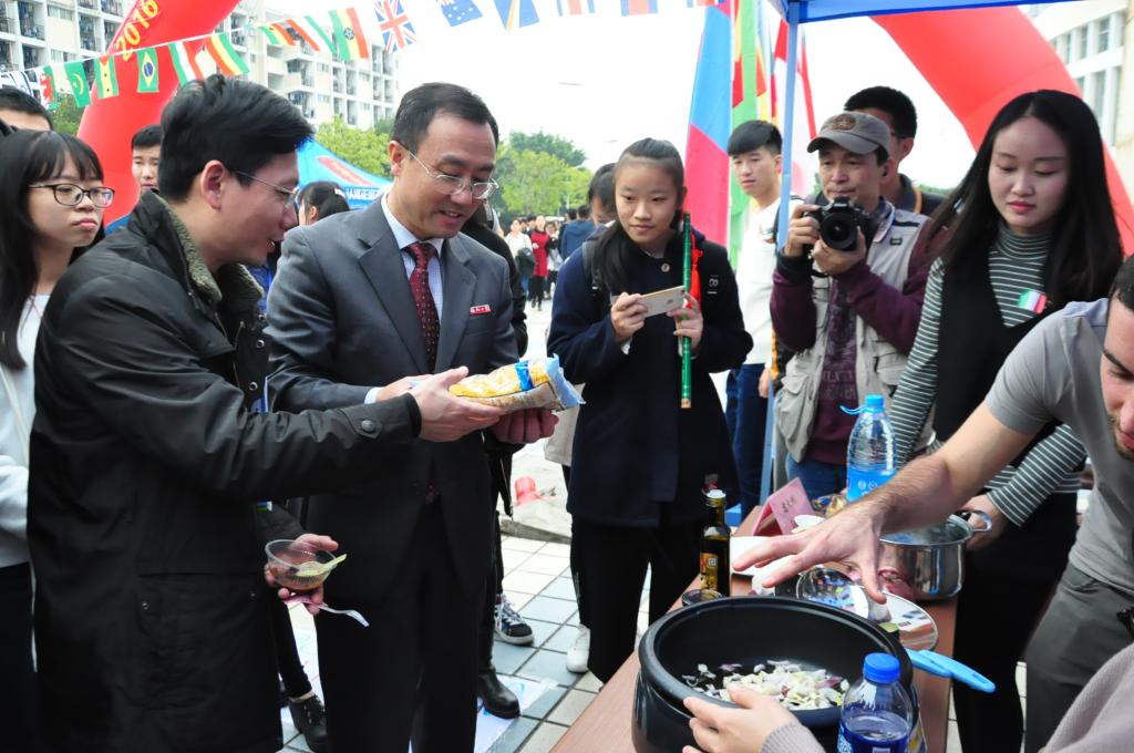 国际文化节在青春广场隆重举行。校办主任林键老师、校对外合作与交流处主任韦建刚老师、外国语学院党委周强副书记、西悉尼大学商学院院长Stella Wu及校院其他各级领导出席了本次活动。