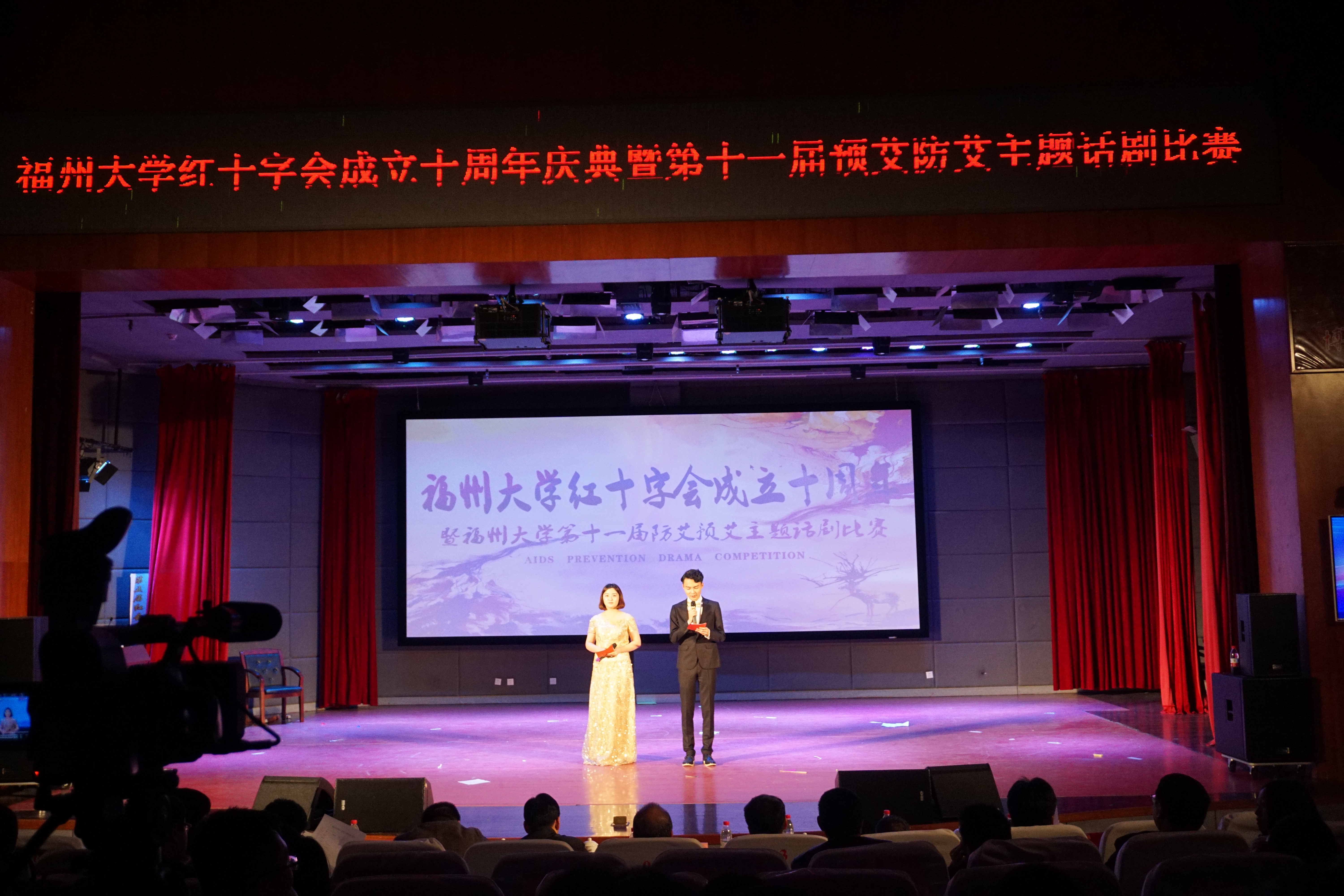 第十一届防艾预艾主题话剧比赛于11月25日晚19时在图书馆博学厅隆重举行。担任本次比赛评委的有校团委吴雪书记、校团党委团校王金龙老师、宣传部文明办刘朝辉主任、学生工作处徐宏志副处长、生工学院党委王群书记。外国语学院团委书记林昕老师出席本次大赛。经前期的层层遴选,最终有来自福大各学院的十支队伍晋级校决赛。