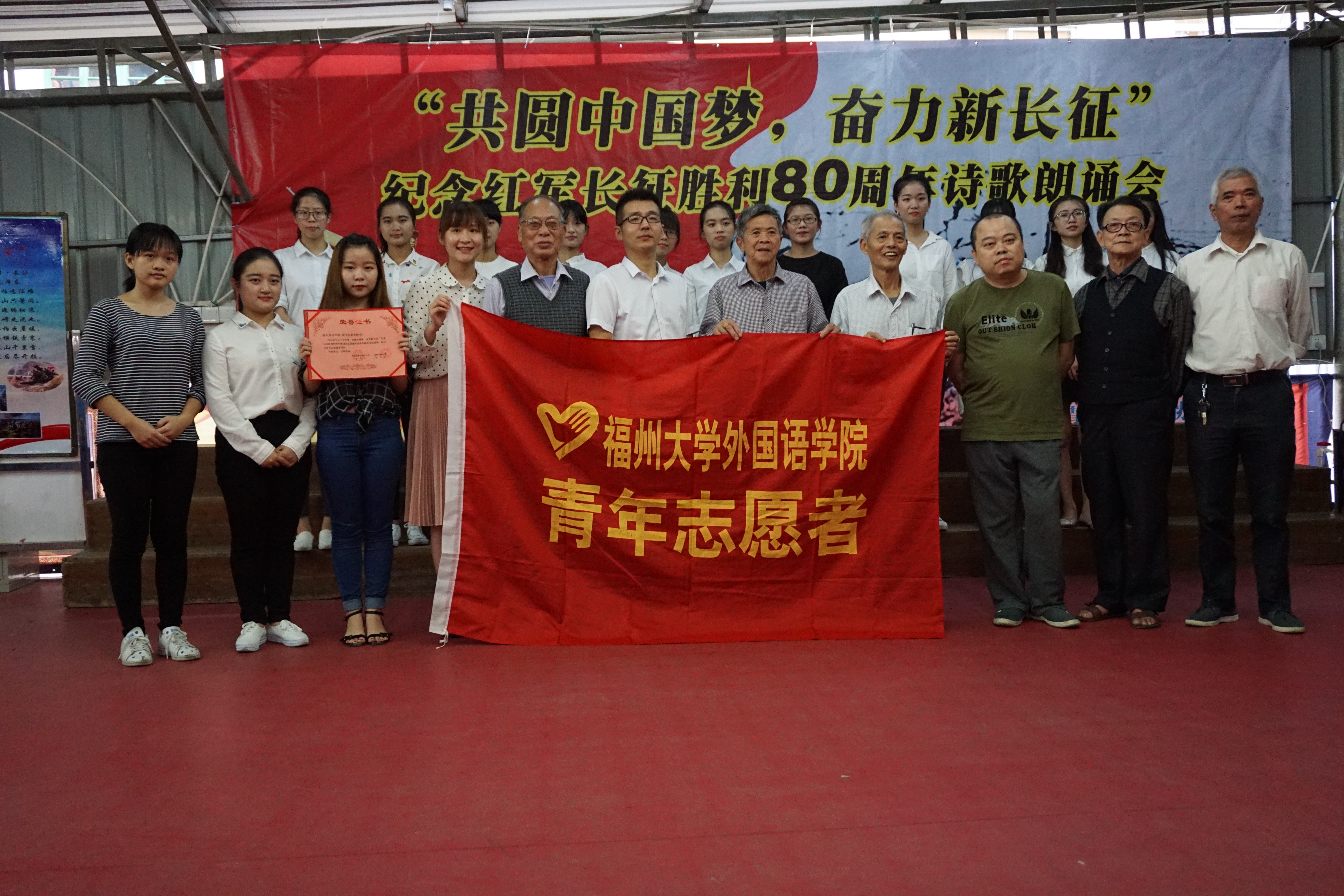 外国语学院、福州市冯宅中心小学、台屿农家书屋和福建工程学院等联合举办的“共圆中国梦,奋力新长征”纪念红军长征胜利80周年诗歌朗诵会在冯宅中心小学顺利举行。来自外国语学院15级英语3班、青年志愿者协会等组织的同学与冯宅中心小学的同学们共同为观众们献上了一场激情饱满的朗诵盛宴。外国语学院团委书记林昕老师莅临本次诗歌朗诵会观看表演。
