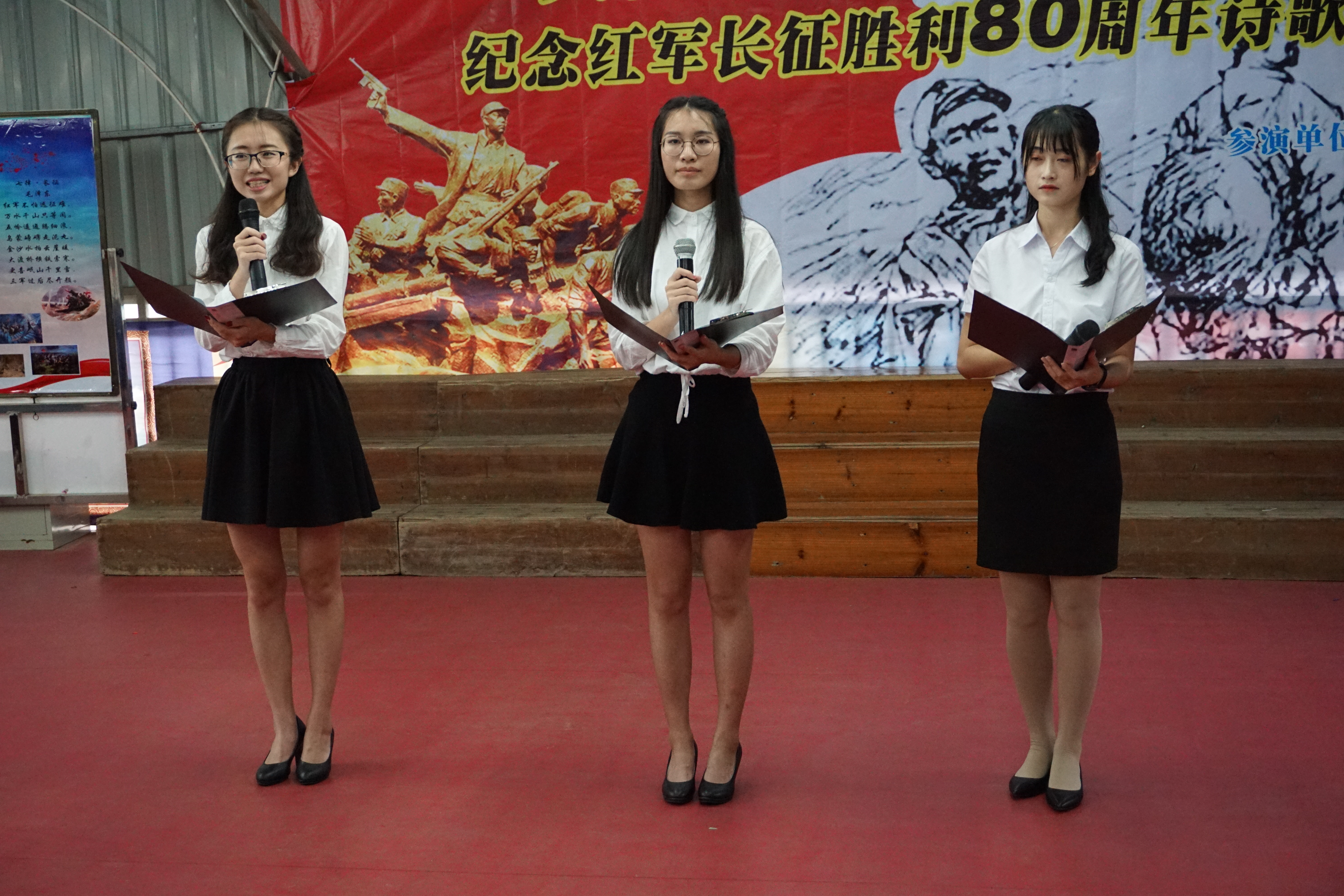 下午13时许,朗诵大会正式开始。外国语学院的董晨雪同学以一篇慷慨激昂的《祖国啊,我亲爱的祖国》赢得了掌声阵阵;俞欢、罗丝蕾、张雅清同学以《传承长征精神,建设美好家园》深情诠释了对先辈的礼赞;15级英语3班的同学们则以一篇《长征颂》讴歌了红军们的丰功伟绩。同学们的深情演绎赢得了在场观众的赞许。15点30分左右,朗诵大会圆满落幕。