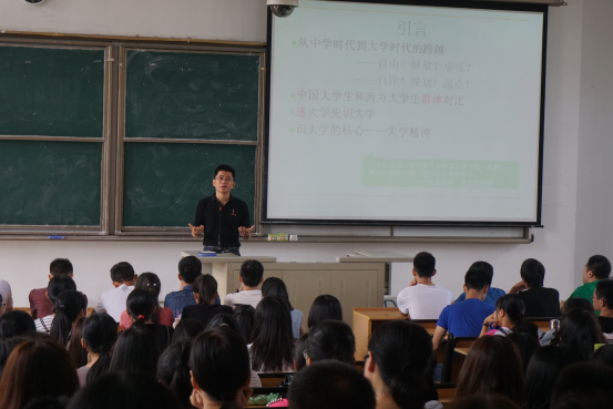 9月7日,由外国语学院学生处陈永福老师主讲的新生入学教育“大学精神”三观教育主题讲座如期开展。