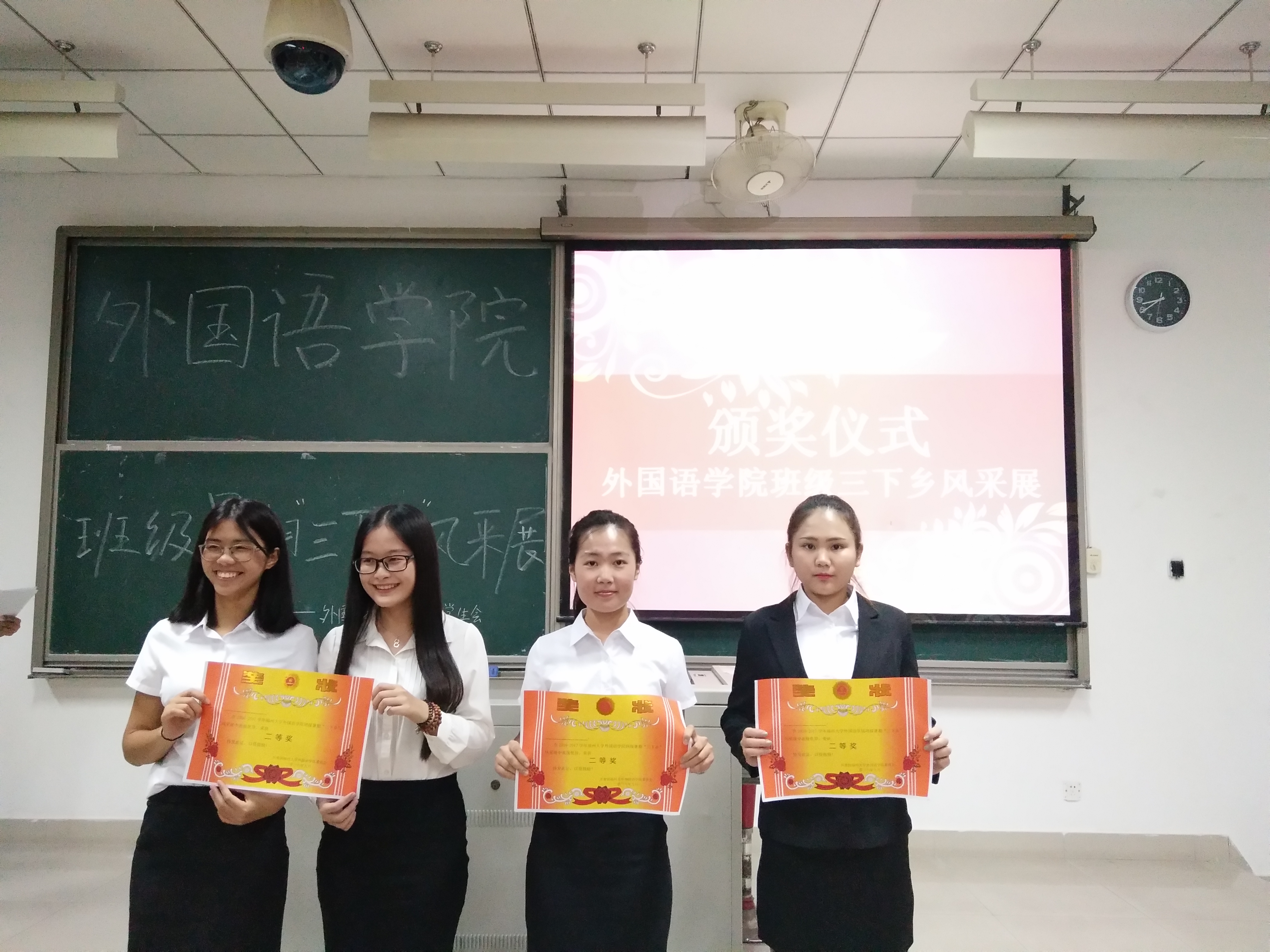 9月19日晚七点,在院团委林昕老师等的带领下,外国语学院2016年暑期班级三下乡风采展在文二-204举行,此次活动邀请到外国语学院团委学生会的几位学生干部担任评委。