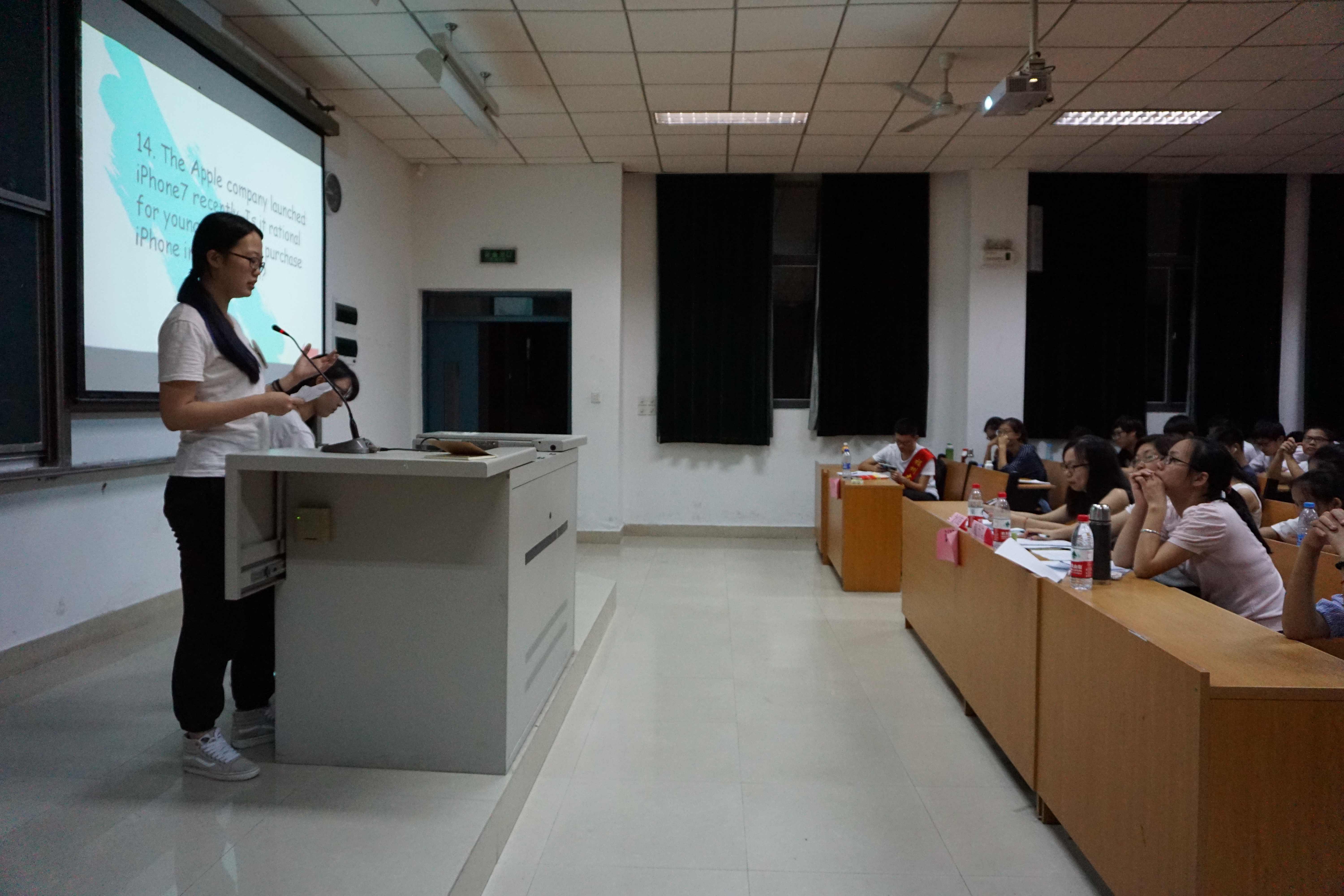 各学院(除外国语学院)的29名学子同台竞技,场面热烈。本次比赛邀请到戴力芬老师、叶青老师和刘燕老师担任评委。