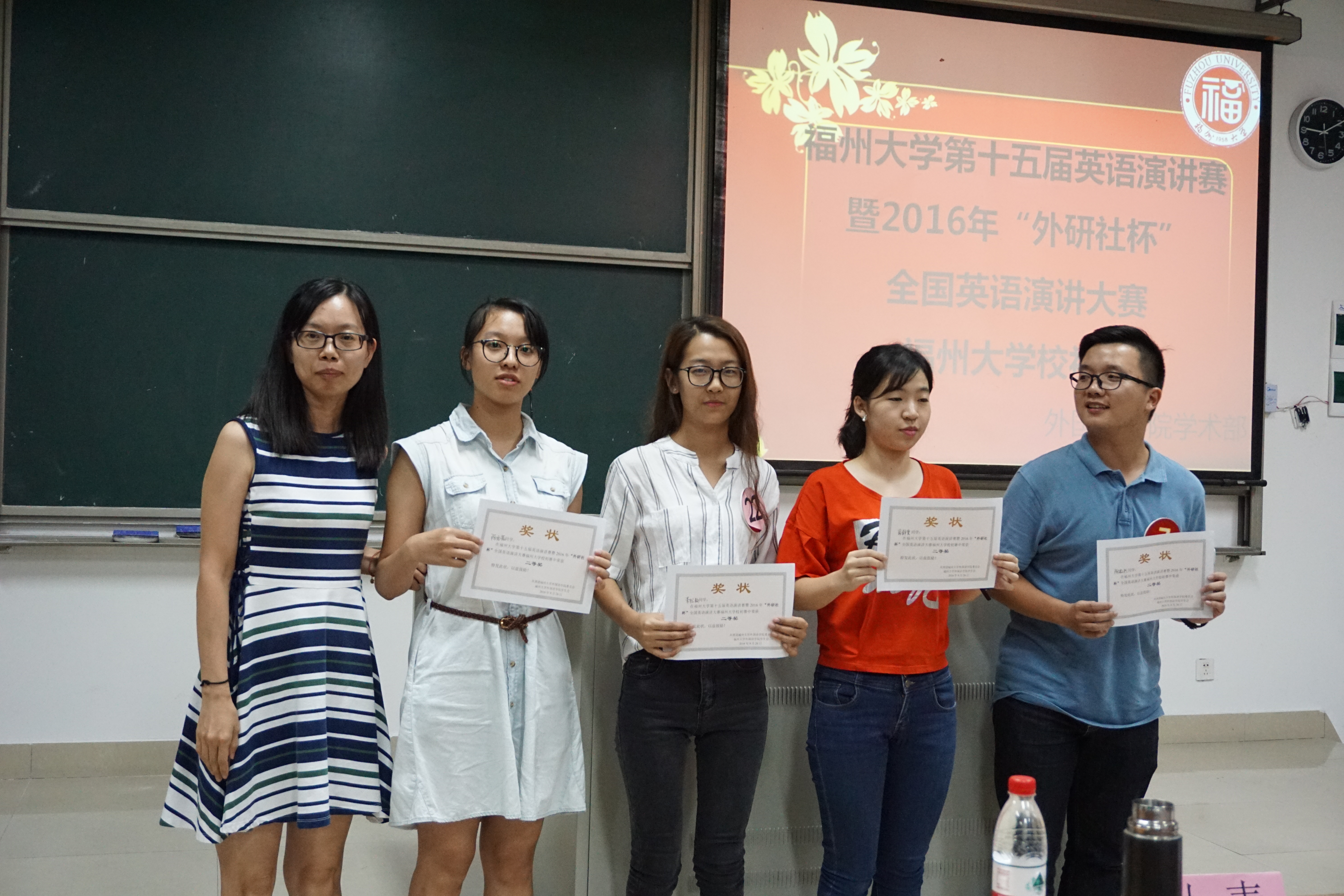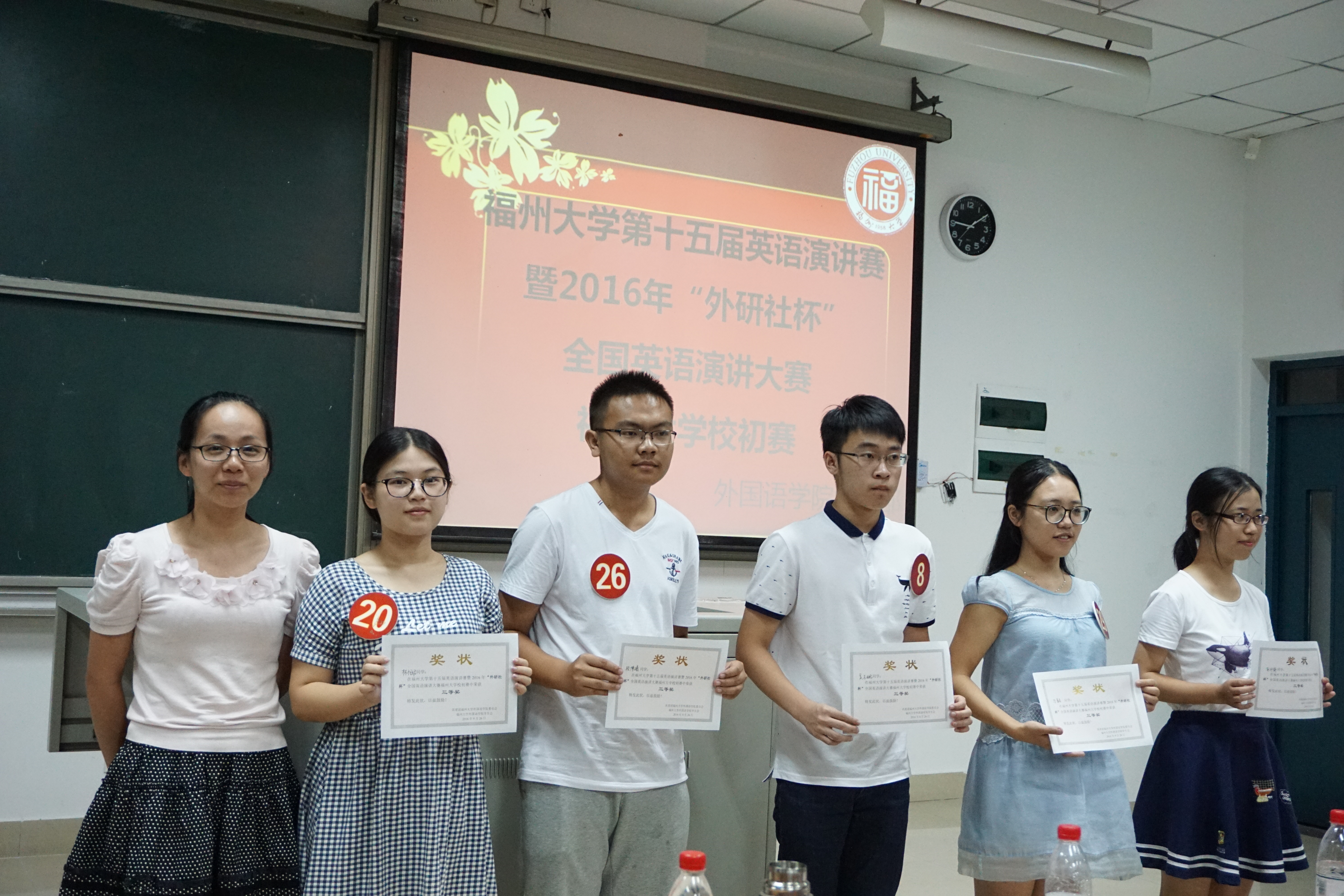 经过近几个小时的角逐,最终选手成绩如下:丁水源,徐晓瑜,郑艾雯三位同学获一等奖,陈傲然,翁静雯,李松颖,陈雨薇四位同学获二等奖,吴志鹏,万毅,林恬妮,彭怀静,段博曦五位同学获三等奖。这十二位同学将参加于10月10日19点在素拓学术报告厅举行的校决赛,与来自外国语学院的三位晋级者一起,进行最后的桂冠争夺。